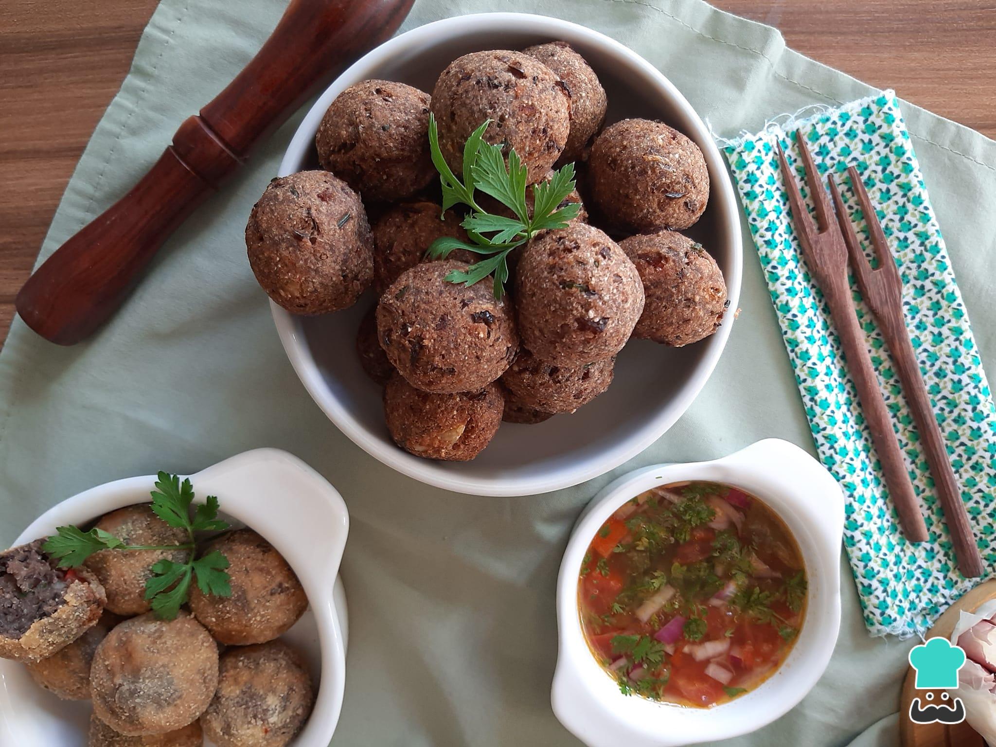 Com poucos ingredientes você irá preparar bolinhos de feijão sequinhos e cheios de sabor, graças aos temperos que iremos sugerir e, se você preferir, nem precisará empaná-los na farinha de rosca! Esta receita renderá cerca de 24 bolinhos e poderá ser uma ótima opção para servir como petisco num encontro com amigos!