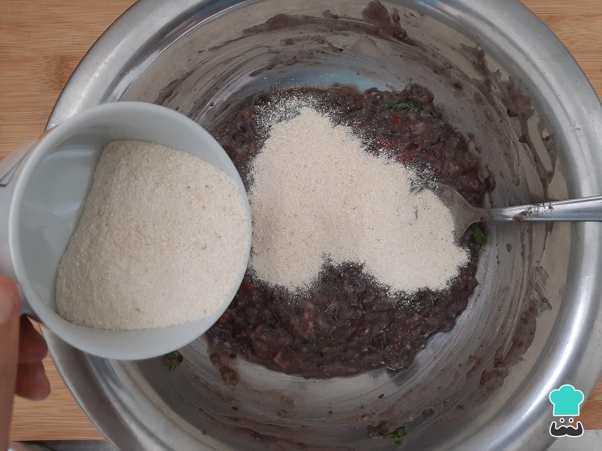 Para empanar os bolinhos de feijão, depois de modelados, passe-os no ovo batido (com um garfo) e em seguida na farinha de rosca, fritando-os em seguida.