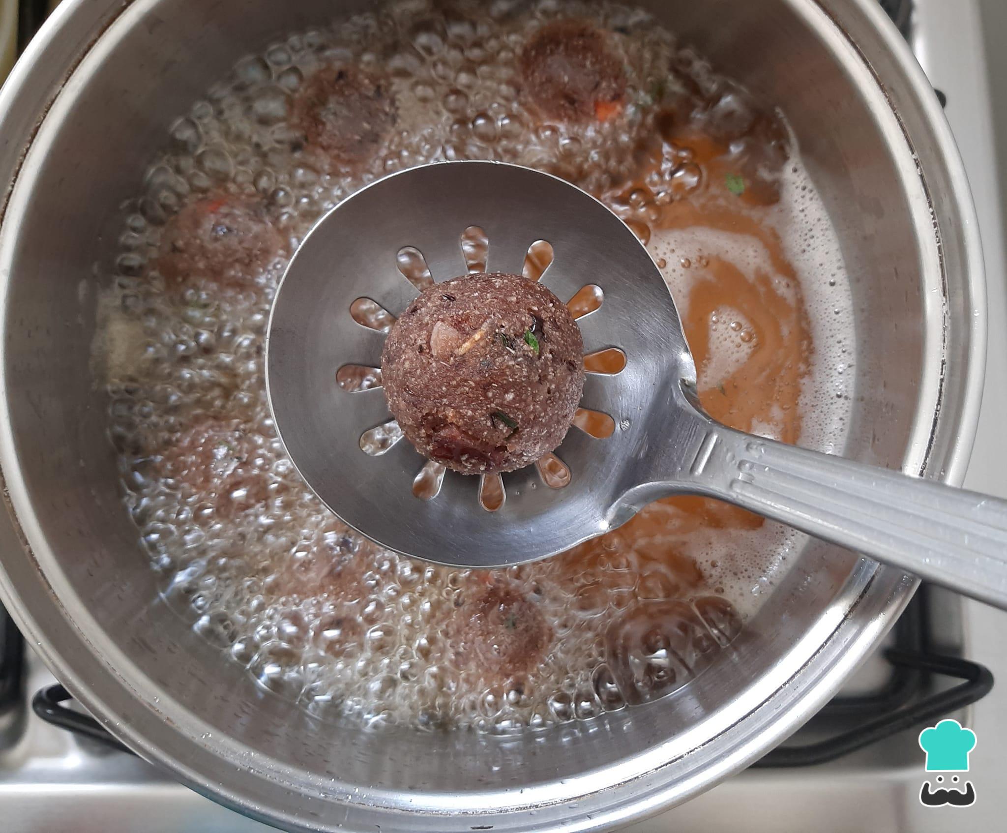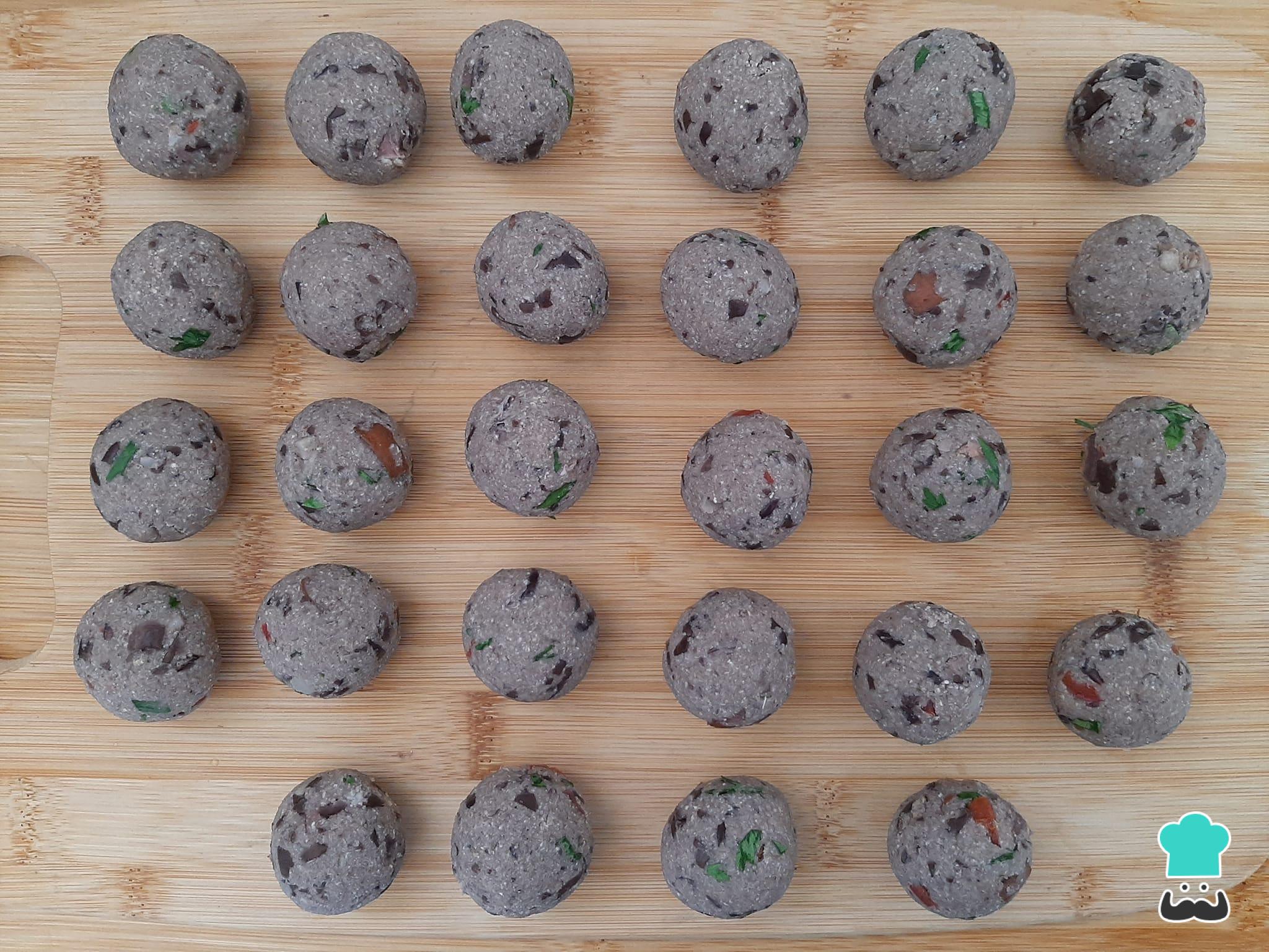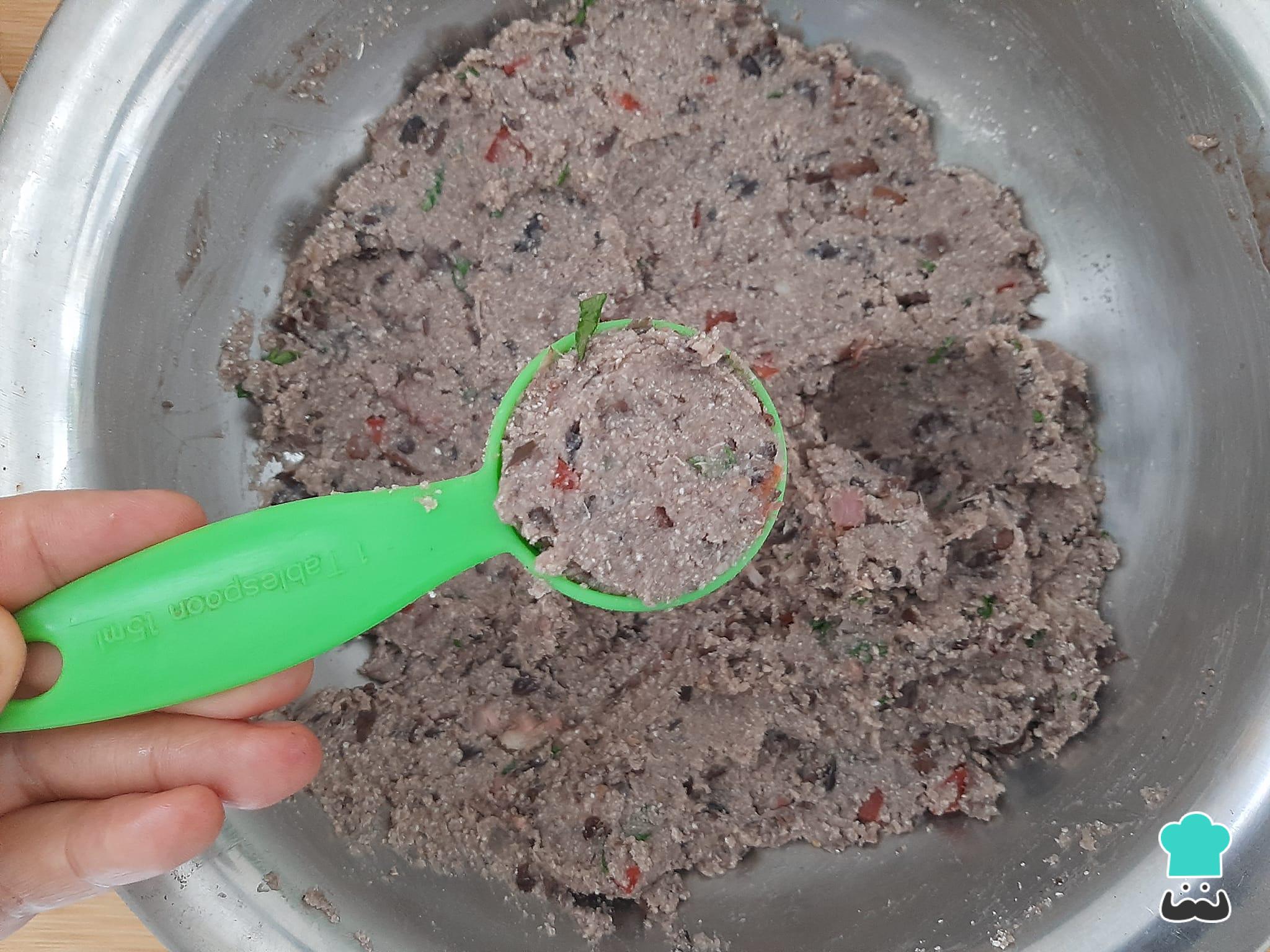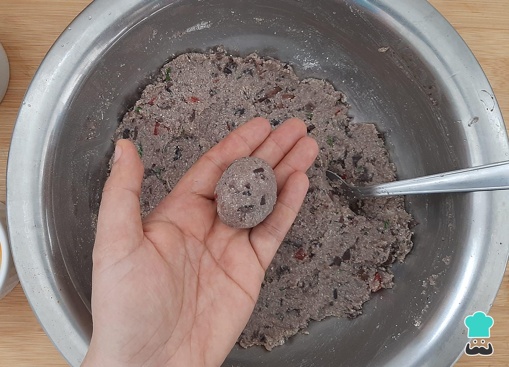 Modele os bolinhos de feijão na palma da mão, como mostra a foto abaixo.