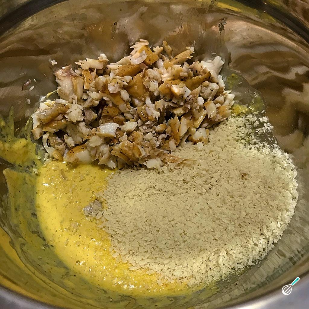 Junte a tilápia previamente desfiada e a farinha panko. Mexa até que se forme uma massa.