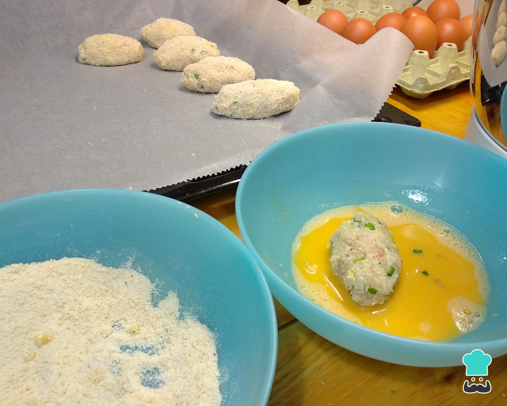 Dica: Pressione levemente a farinha de mandioca nos bolinhos para garantir que fica bem grudada.