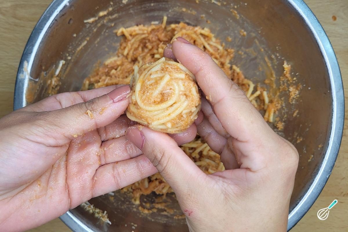Para aprender a fazer esses bolinhos de macarrão, siga abaixo o passo a passo com fotos.