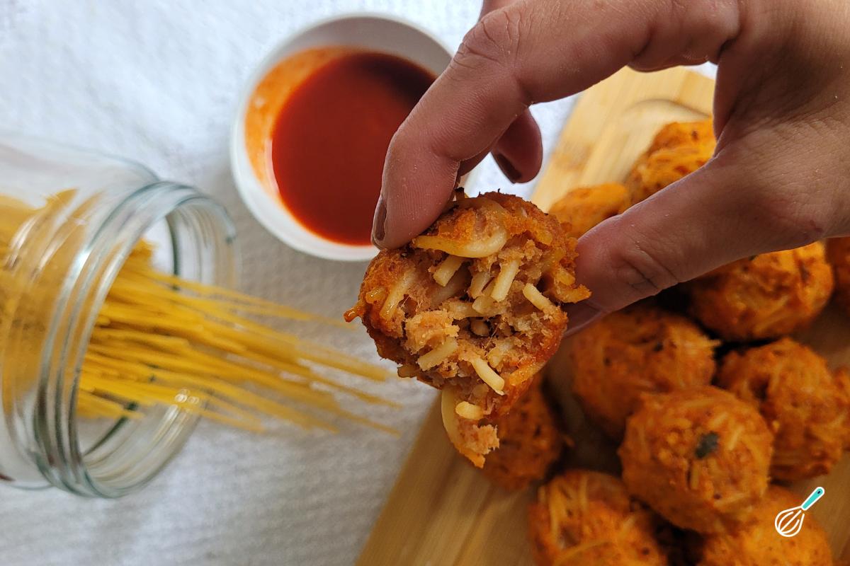 Esse bolinho de macarrão é uma receita italiana perfeita para reaproveitar aquele macarrão que sobrou. É muito versátil porque você pode usar qualquer massa que tiver sobrado aí na sua geladeira e também pode escolher a forma de preparar: eles podem ser fritos por imersão, fritos em uma fritura rasa com azeite na frigideira ou assados no forno ou na airfryer.