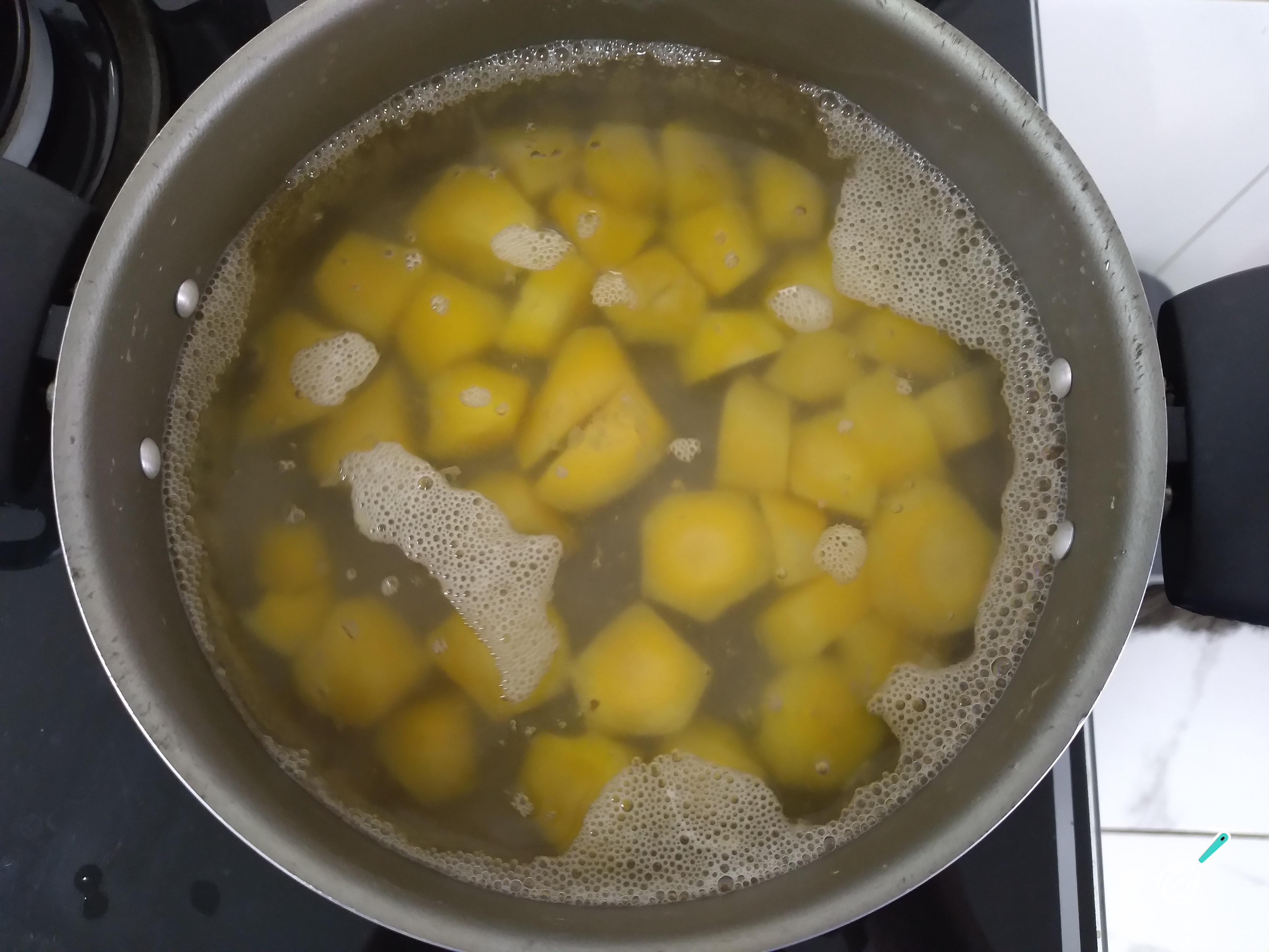 Comece descascando as mandioquinhas, cortando e colocando para cozinhar . Deixe que cozinhem bem, para que fiquem macias. Espete a mandioquinha com um garfo, se ele entrar com facilidade, está cozida.