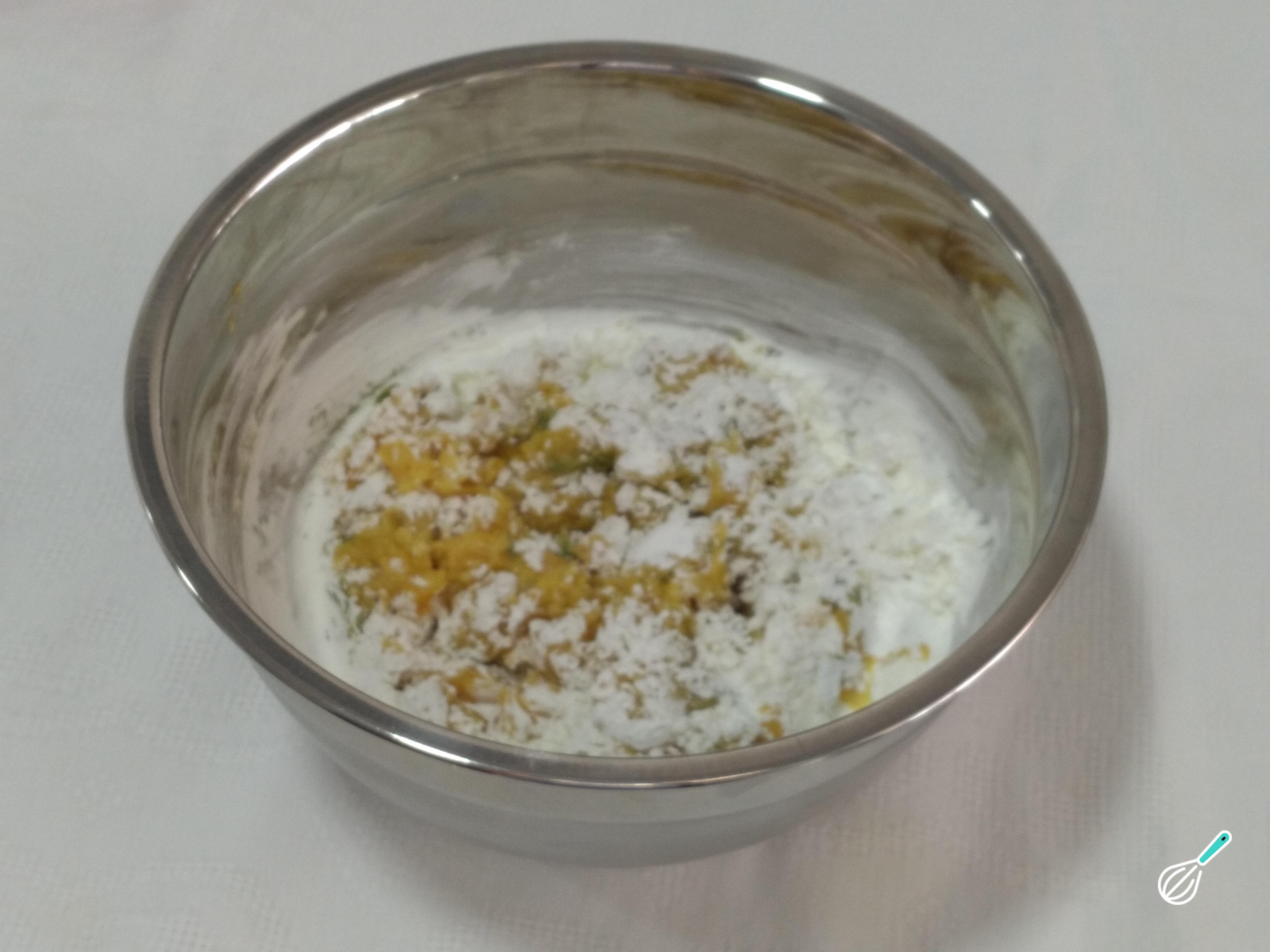 Feito isso, acrescente a cebola, a cebolinha, o sal e os temperos. Misture bem para incorporar os sabores.