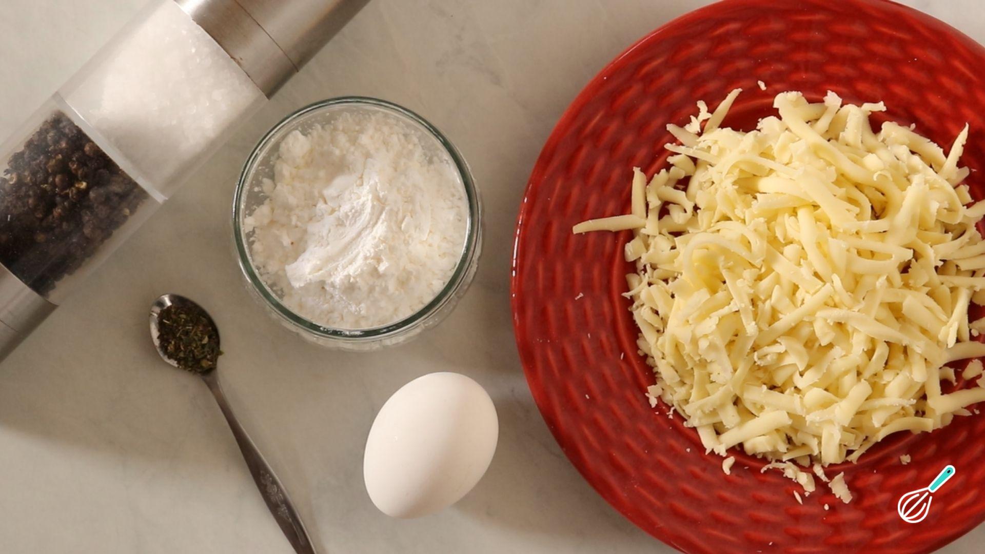 Comece separando os ingredientes e ralando o queijo muçarela.