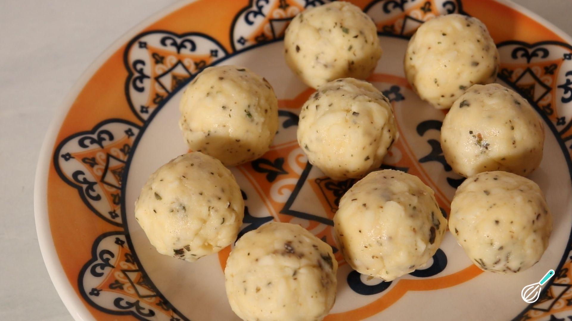 Passado esse tempo, divida a massa em bolinhas - essa receita rendeu 12 bolinhos de queijo com 20g cada um.