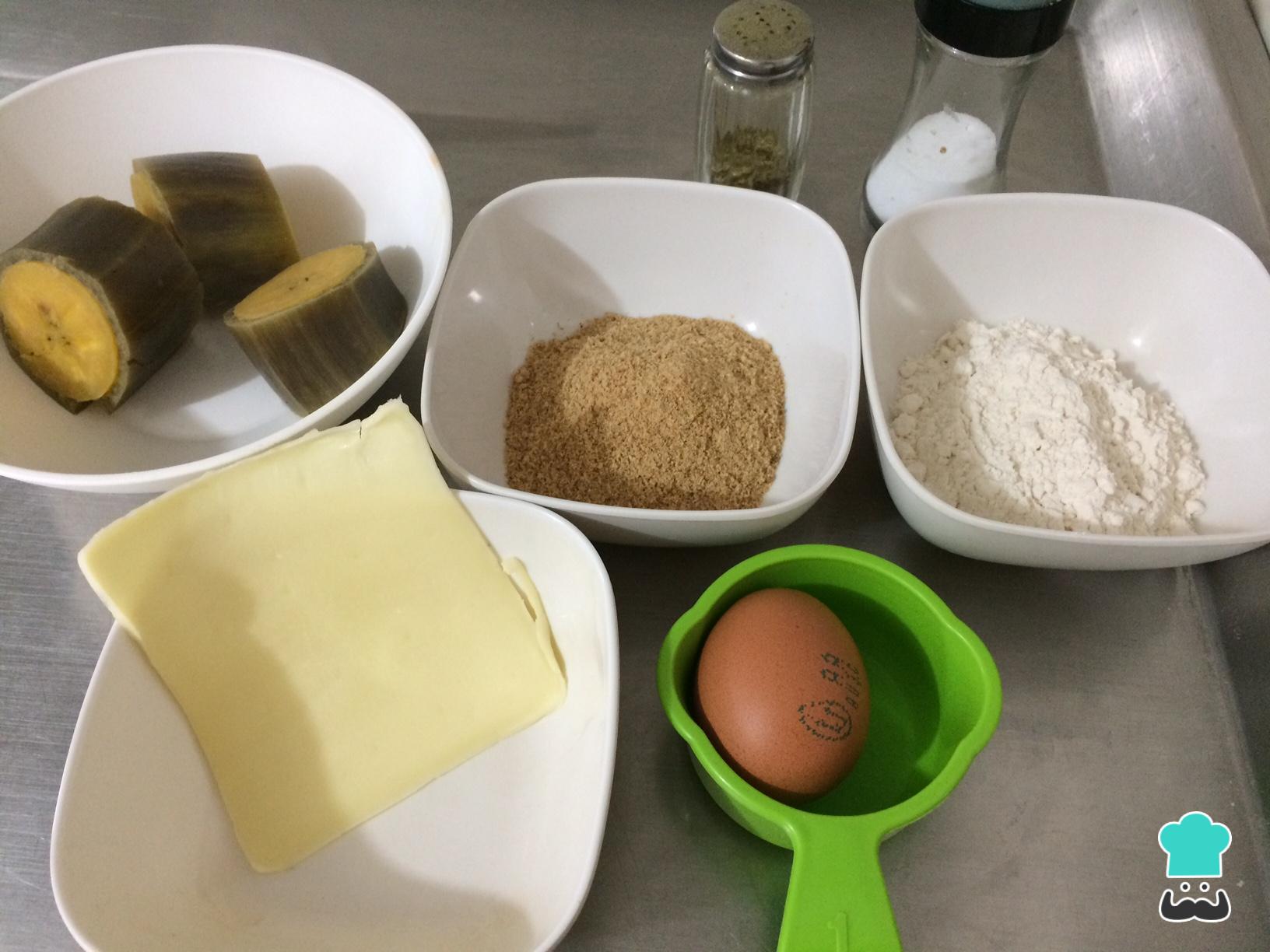 Antes de começar a fazer os bolinhos de banana verde, o primeiro passo é organizar e dispor todos os ingredientes.