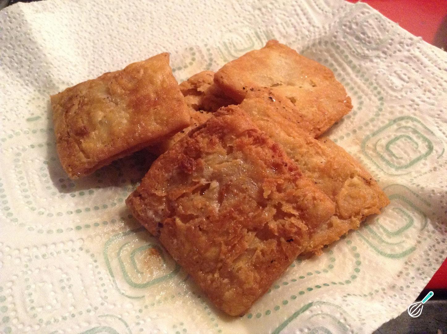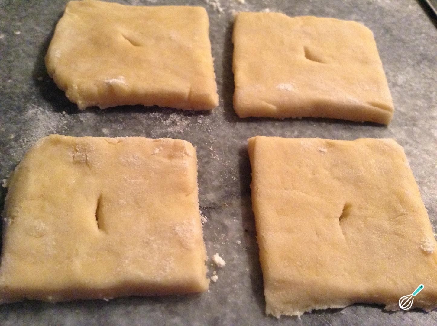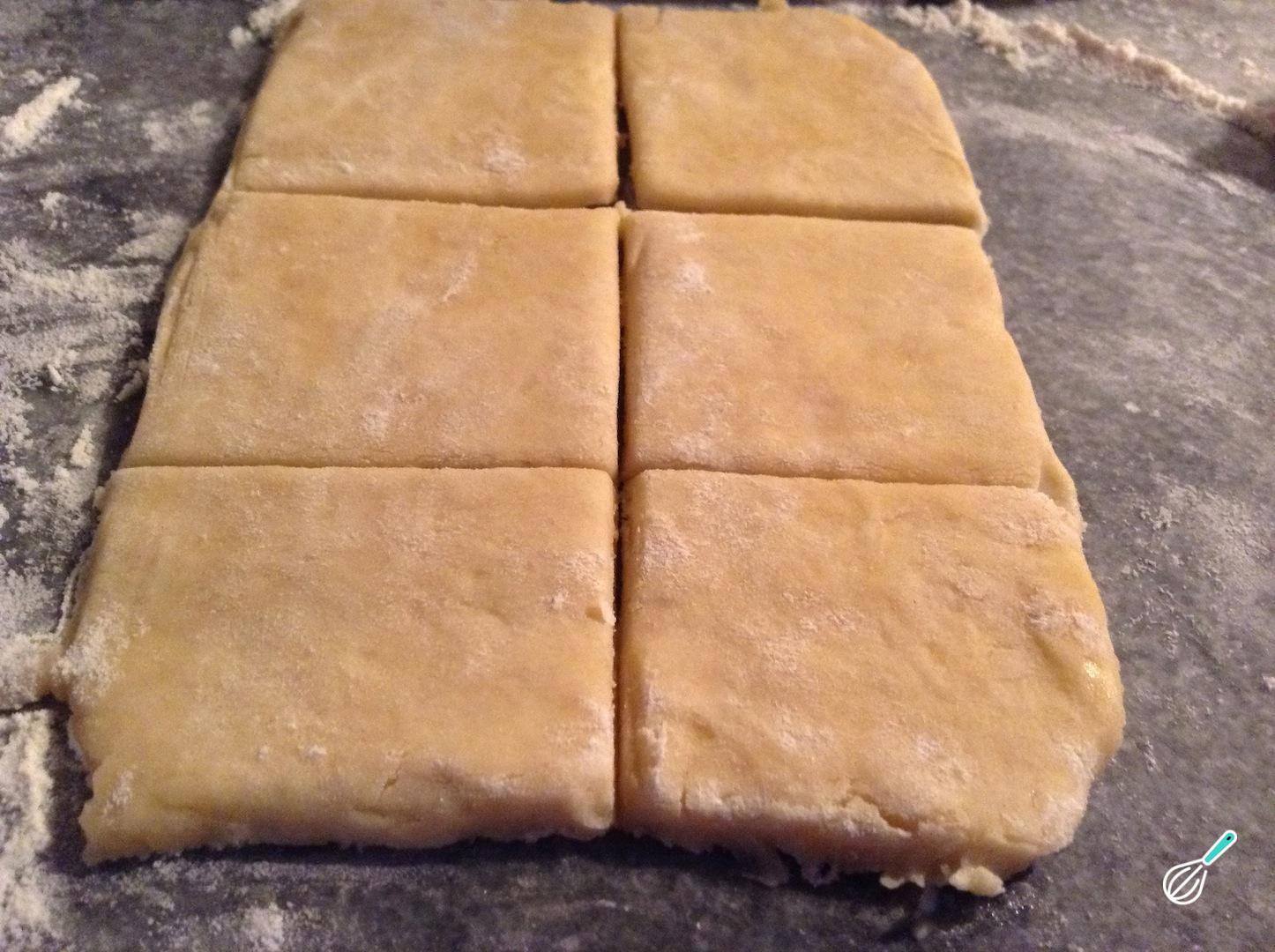 Os bolos fritos tem diferentes formas, sendo geralmente retangulares. Levando isso em conta, corte quadrados de massa o mais semelhantes possível.
