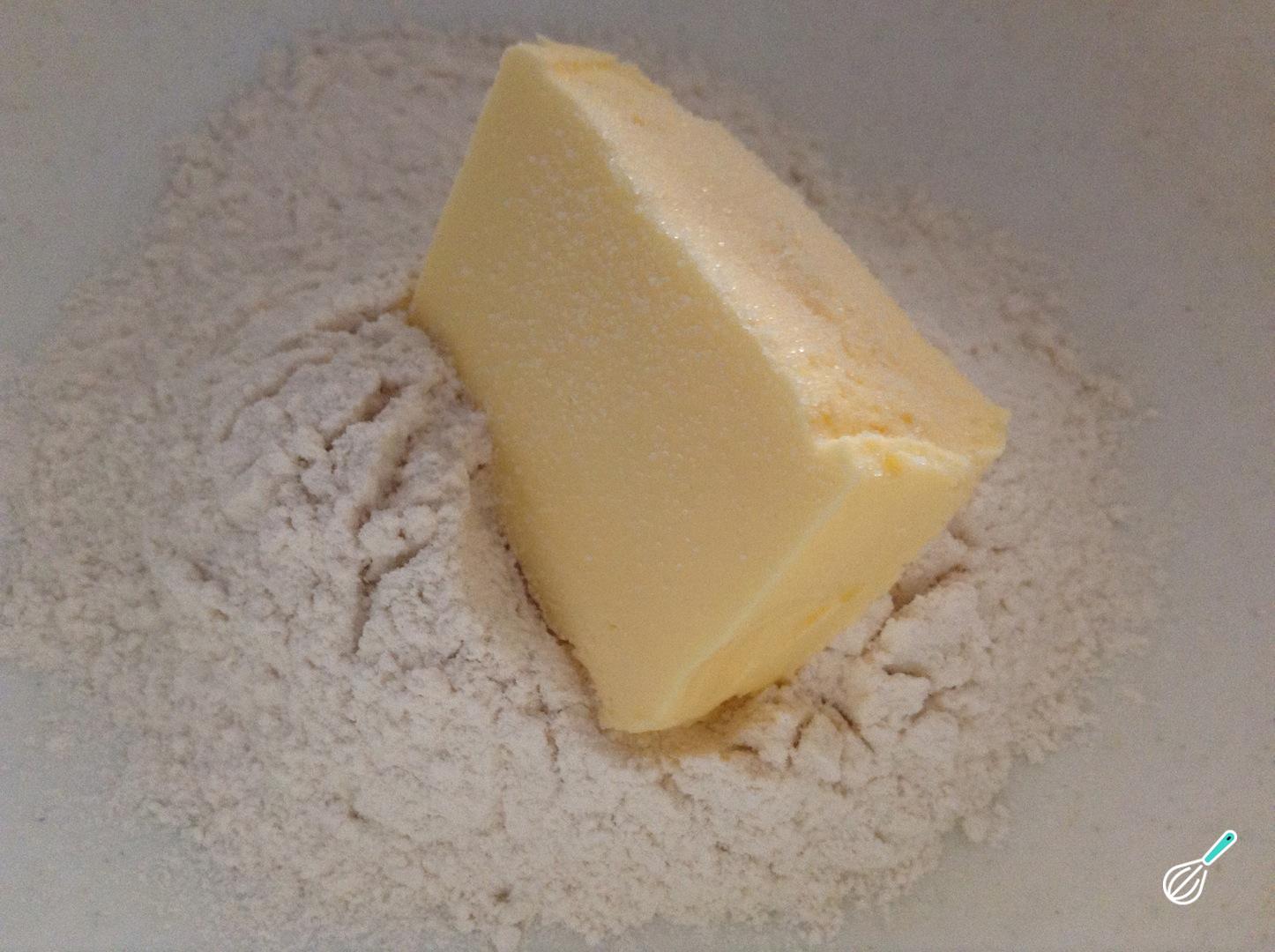 Misture a farinha com a manteiga amolecida e um pouco de sal.