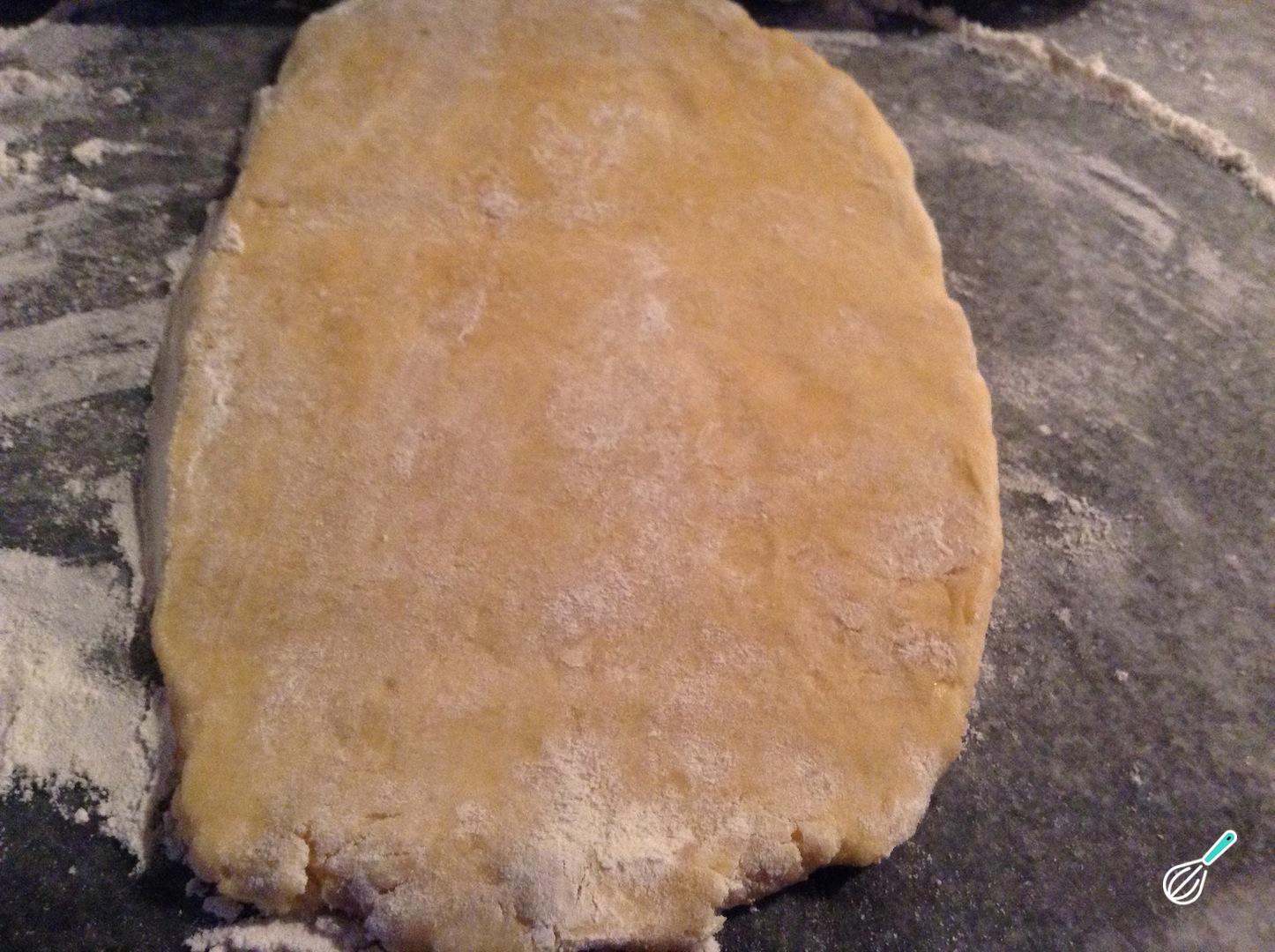 Com a ajuda de um rolo, estenda a massa, como visto na foto.