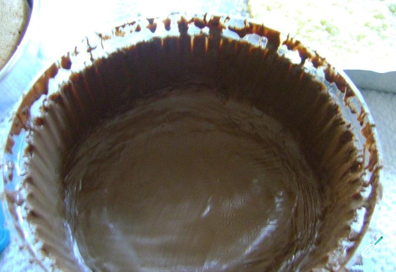 Para montar o bolo bombom, esfarele o bolo já frio e coloque-o sobre a forma de chocolate, intercalando o recheio e bolo. Finalize com o resto da cobertura de chocolate, cubra com papel filme e leve a gelar por uma hora, no mínimo.