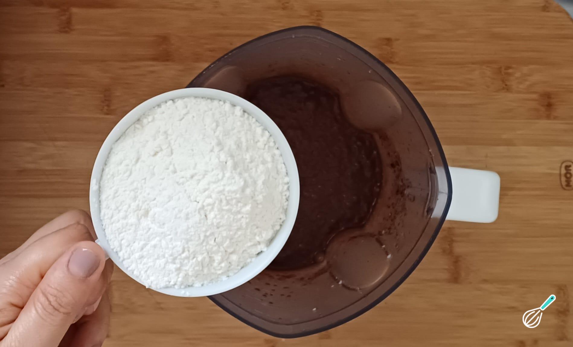 Acrescente a farinha de trigo peneirada e bata novamente.