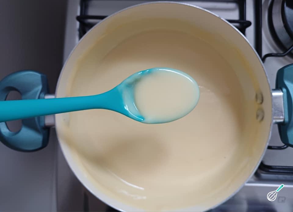 Prepare o recheio moça de colher, juntando todos os ingredientes numa panela para cozinhar em fogo baixo até que o creme comece a engrossar.