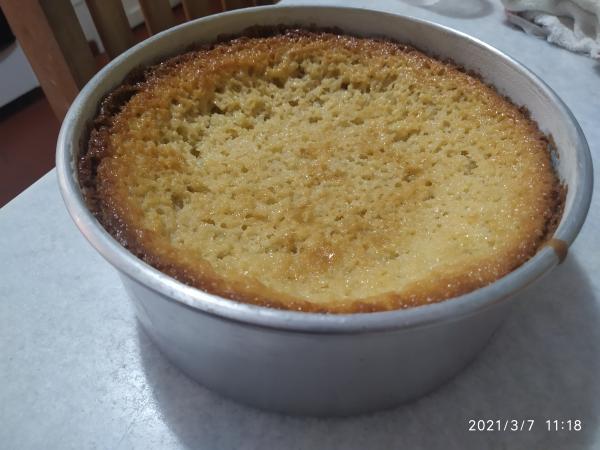 Quando o bolo estiver assado, retire e deixe esfriar. Depois corte ao meio, coloque o creme numa das metades do bolo e tampe com a outra.