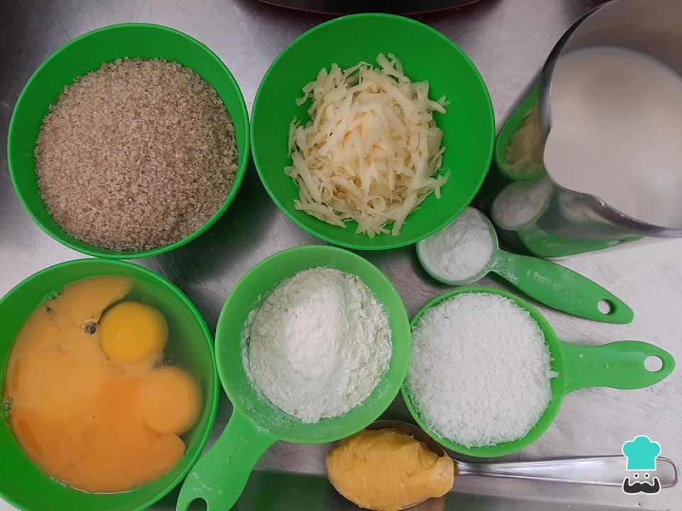 Nesta versão que apresentaremos para vocês, teremos um bolo feito no liquidificador, bem molhado e cremoso, feito com leite, ovos, manteiga, queijo parmesão ralado e coco (que pode ser opcional) e um pouco de farinha de trigo.