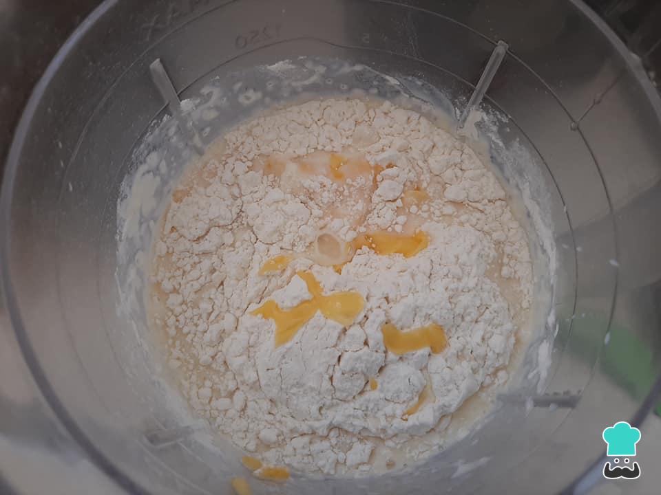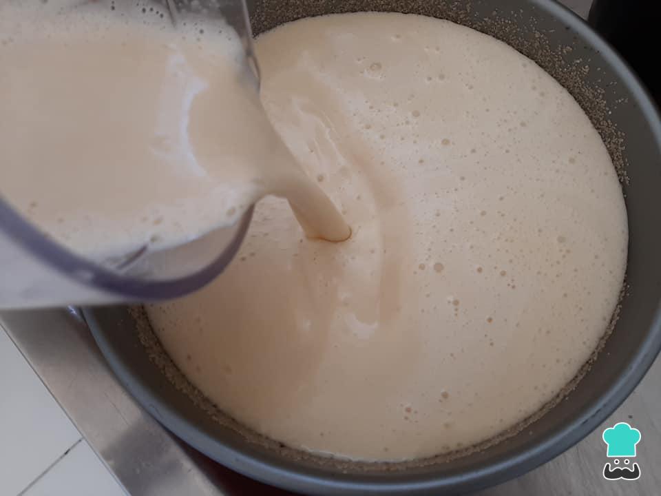 Bata no liquidificador todos os ingredientes do bolo, com exceção do fermento em pó, até que a massa fique lisa e homogênea.