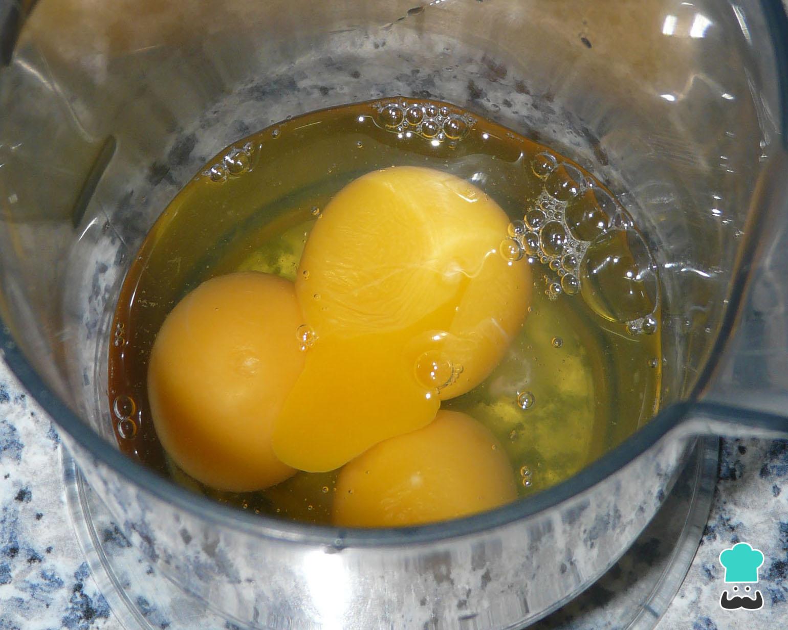 Bata os outros ingredientes (os ovos, o óleo e o açúcar) no liquidificador até formar um creme. Incorpore na farinha e fermento e misture bem, até dissolver os grumos.