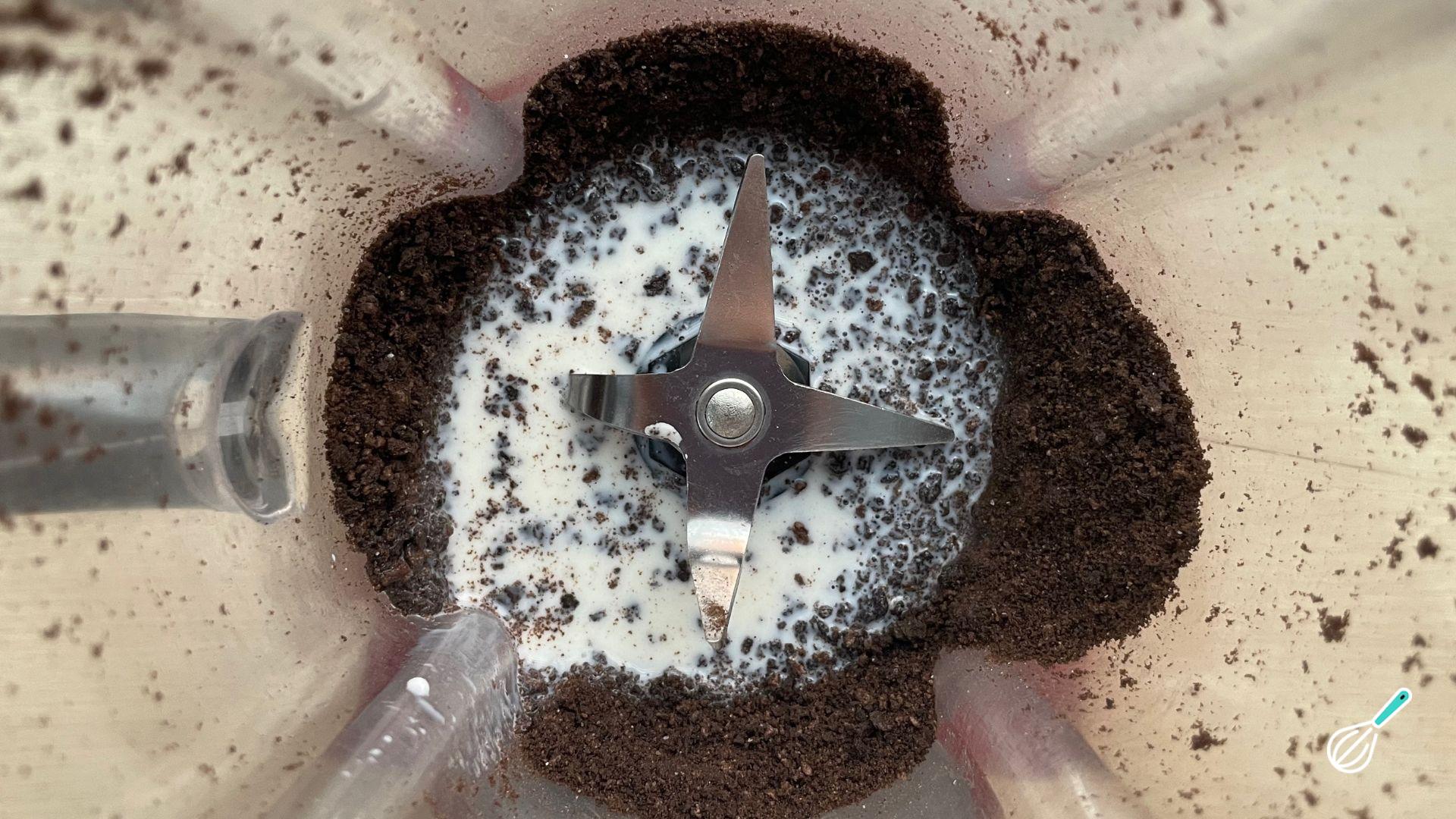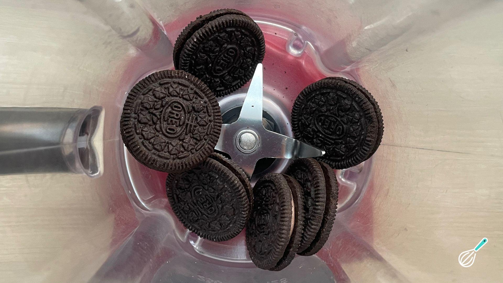 Bata as bolachas, com recheio e tudo, no liquidificador até formar uma farofa.