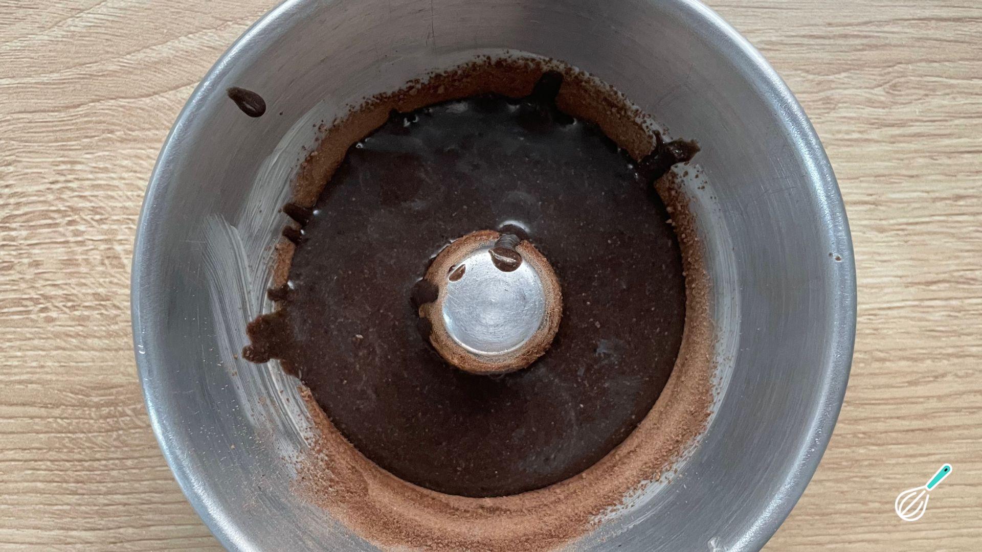 Despeje em uma assadeira untada com manteiga e chocolate em pó e leve para assar em forno preaquecido a 180 graus por 30 minutos ou faça o teste do palito.