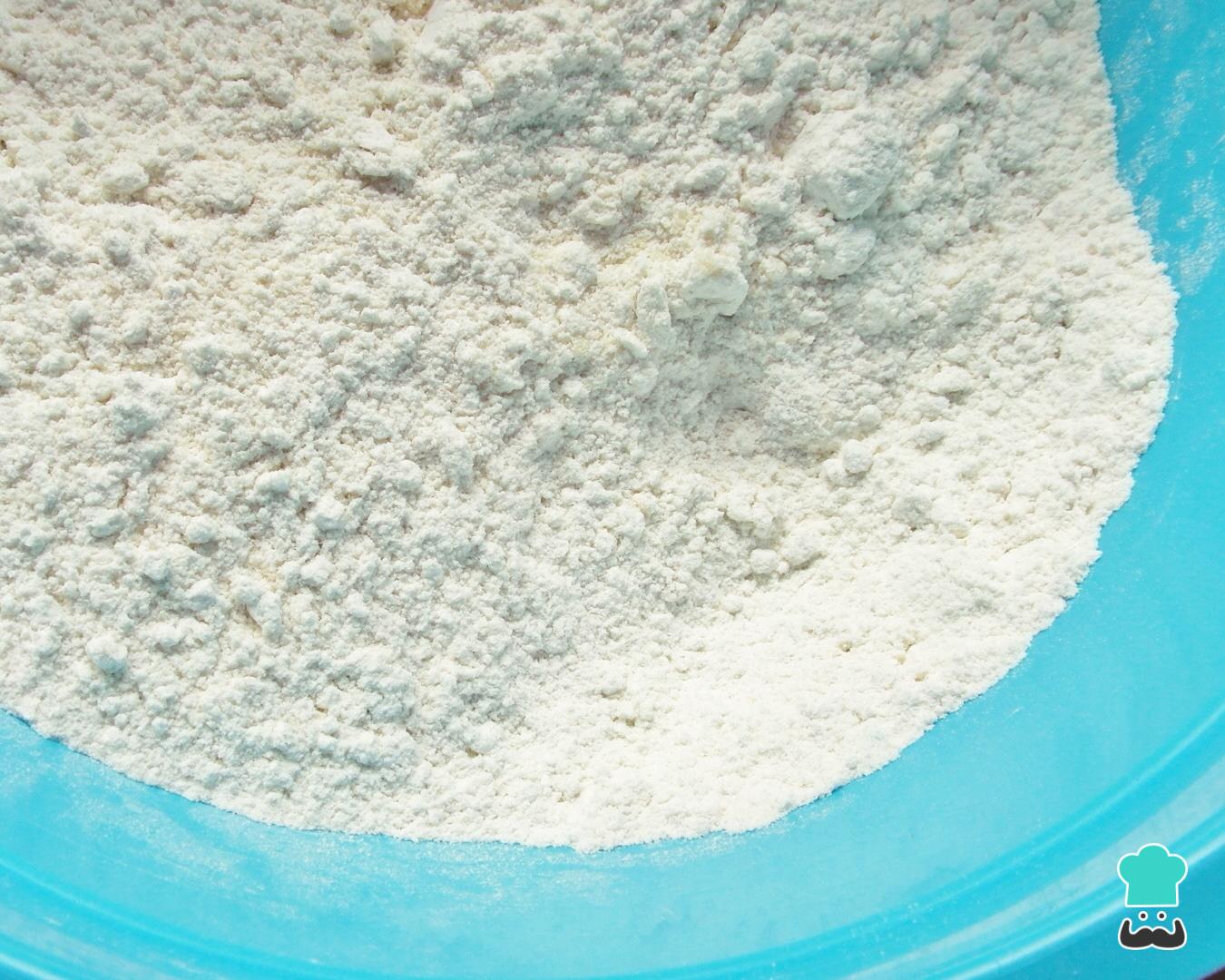 Numa vasilha misture os ingredientes secos peneirados: a farinha de aveia, a farinha de coco e as raspas.
