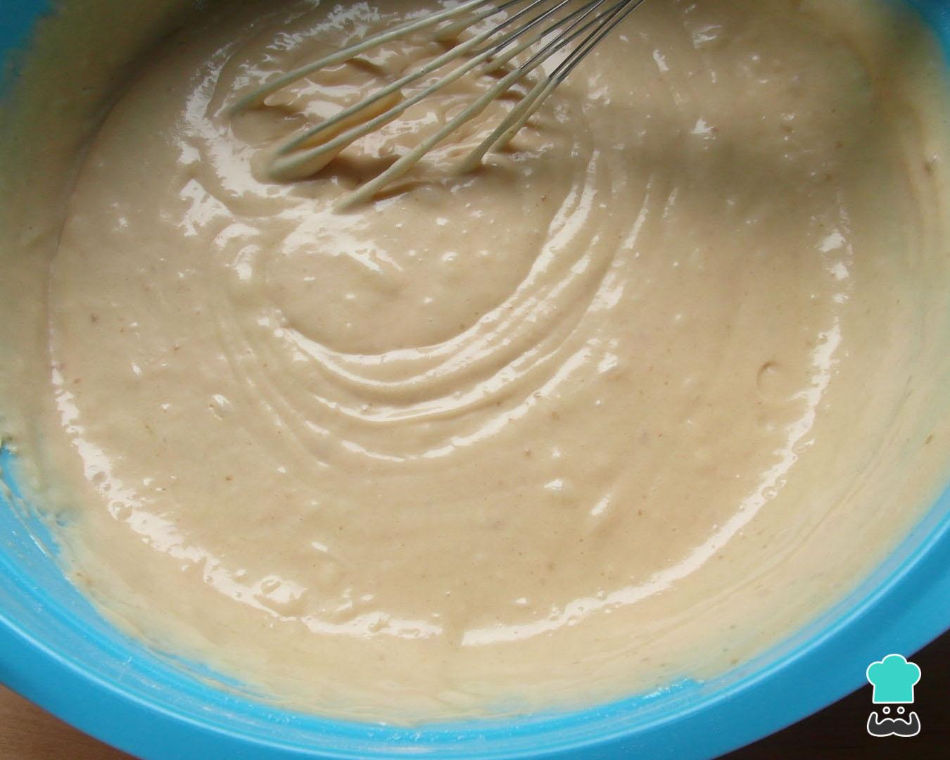 Coloque a mistura do liquidificador na vasilha com os secos e misture tudo muito bem até dissolver os grumos de farinha. Por fim adicione o fermento e mexa somente para incorporar na massa.