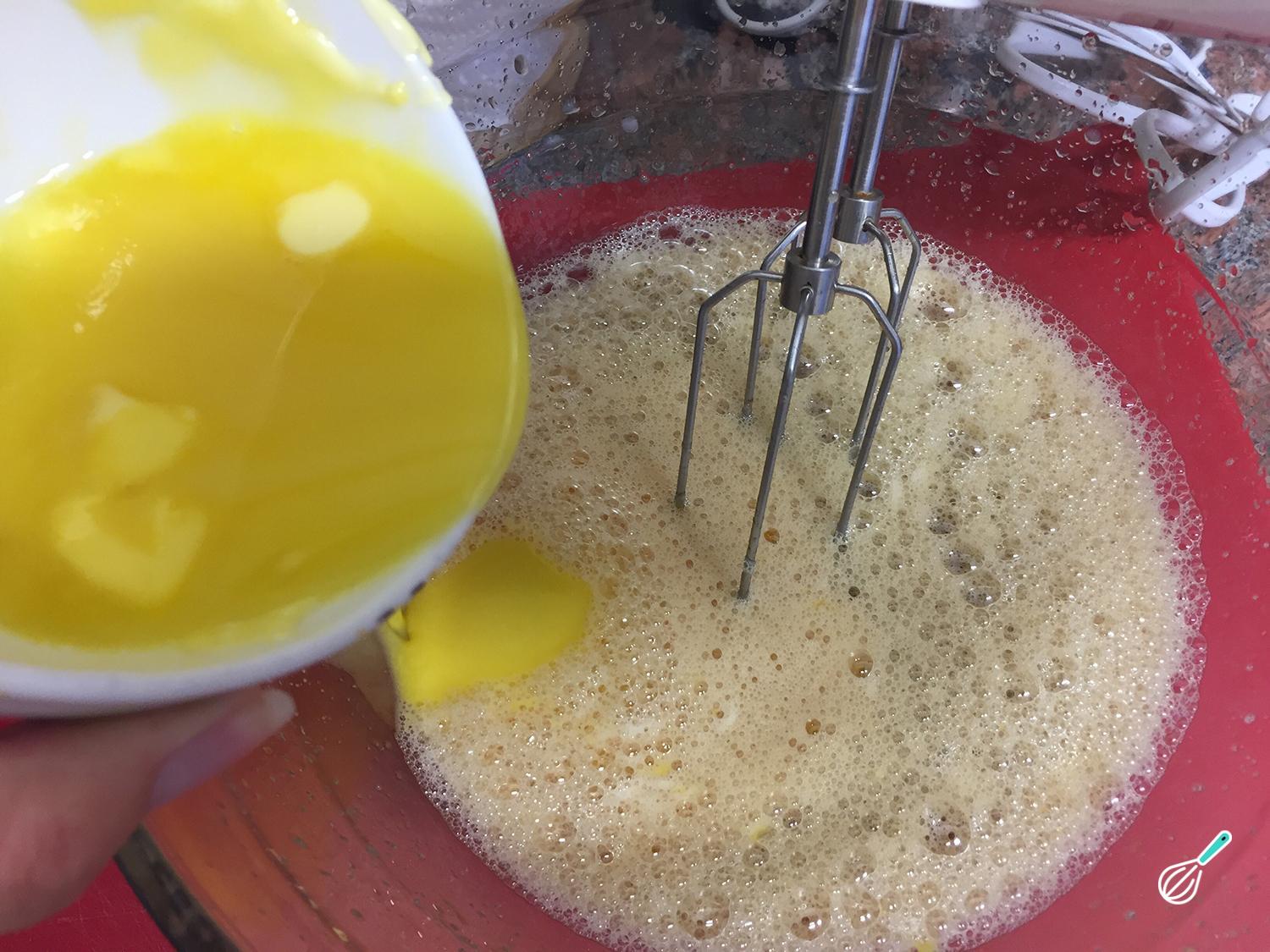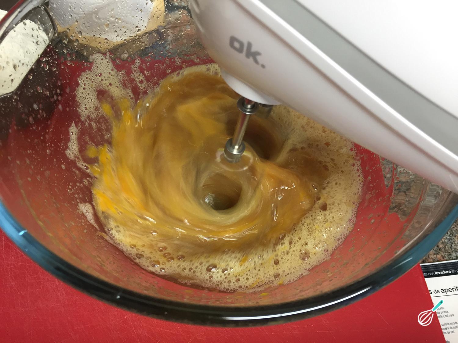 De seguida acrescente os ovos um por um, batendo entre cada intervalo. Aconselhamos que use uma batedeira elétrica ou fouet neste passo, assim conseguirá um resultado melhor.