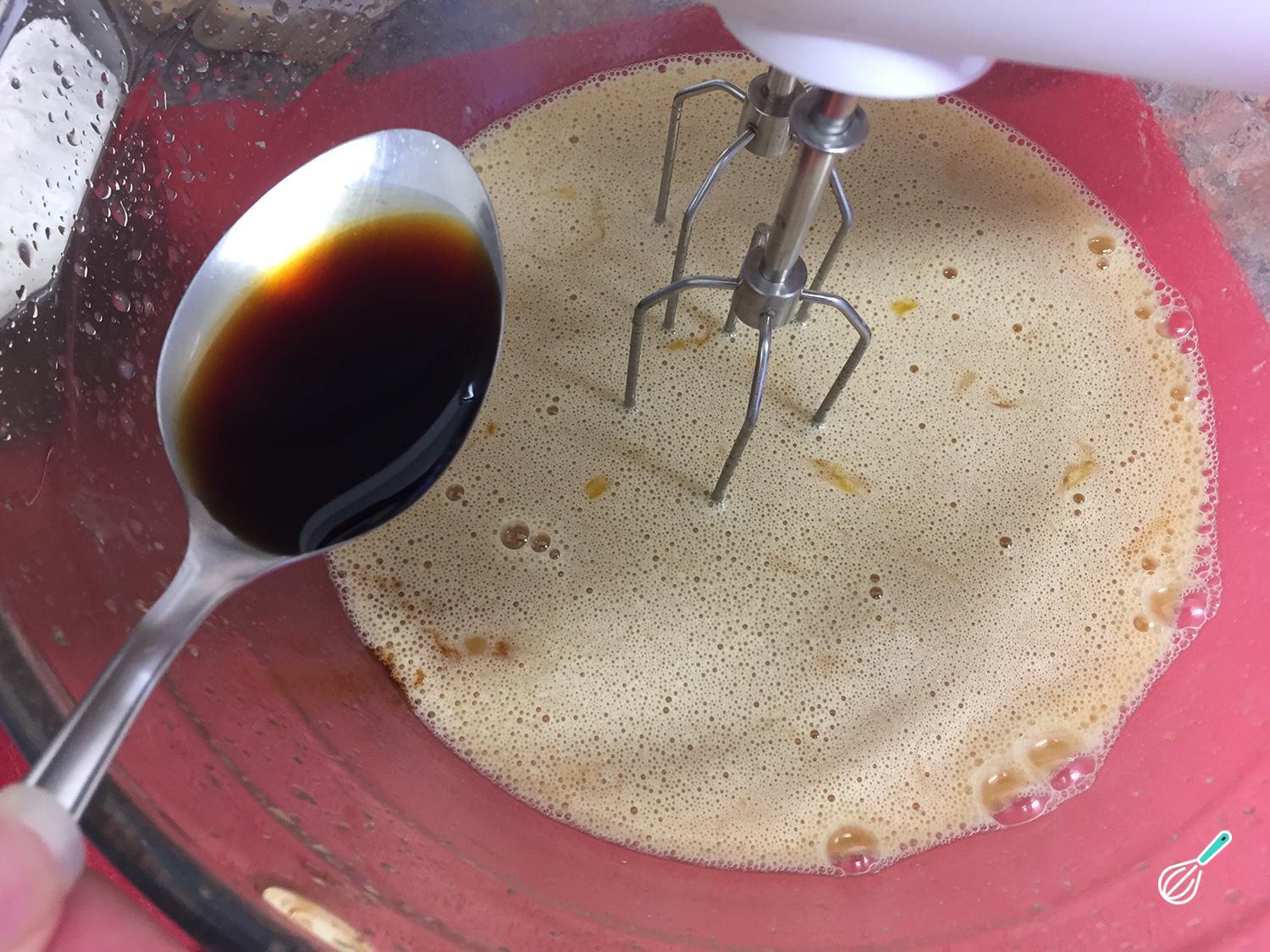 Chega a vez de adicionar a essência de baunilha a esse bolo fácil. Esse ingrediente irá conferir mais sabor à massa, por isso não deixe de usar.