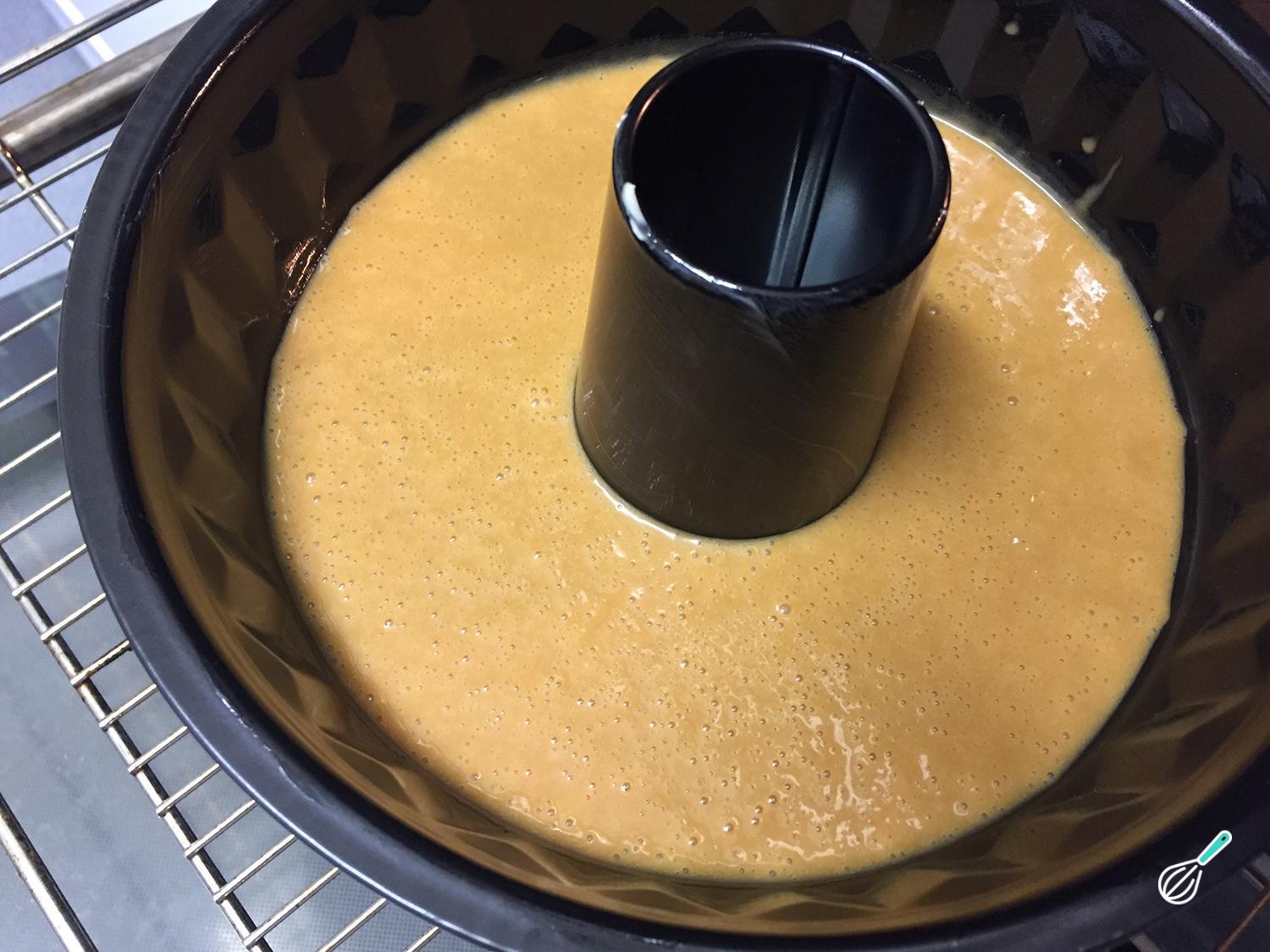 Coloque a massa deste bolo de baunilha e caramelo em uma forma de bolo untada e leve ao forno por 40-45 minutos.