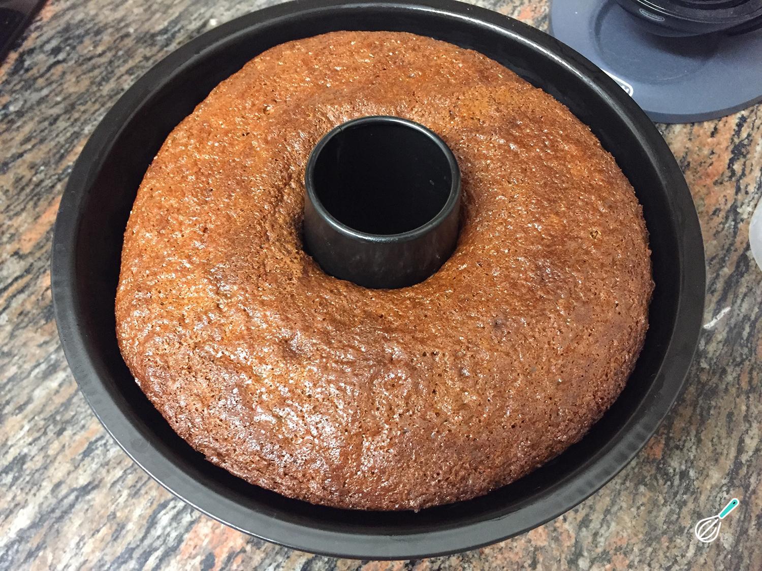 Quando estiver assado, retire o bolo do forno e deixe esfriar por completo antes de desenformar.
