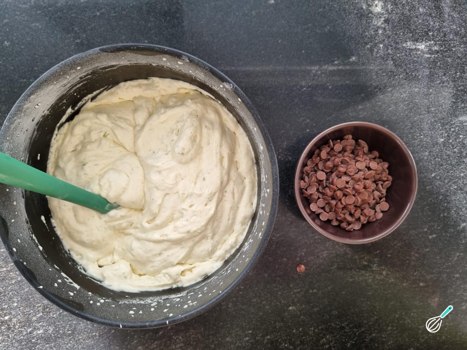 Por último, acrescente o chocolate que é o toque especial do seu bolo com gotas de chocolate.