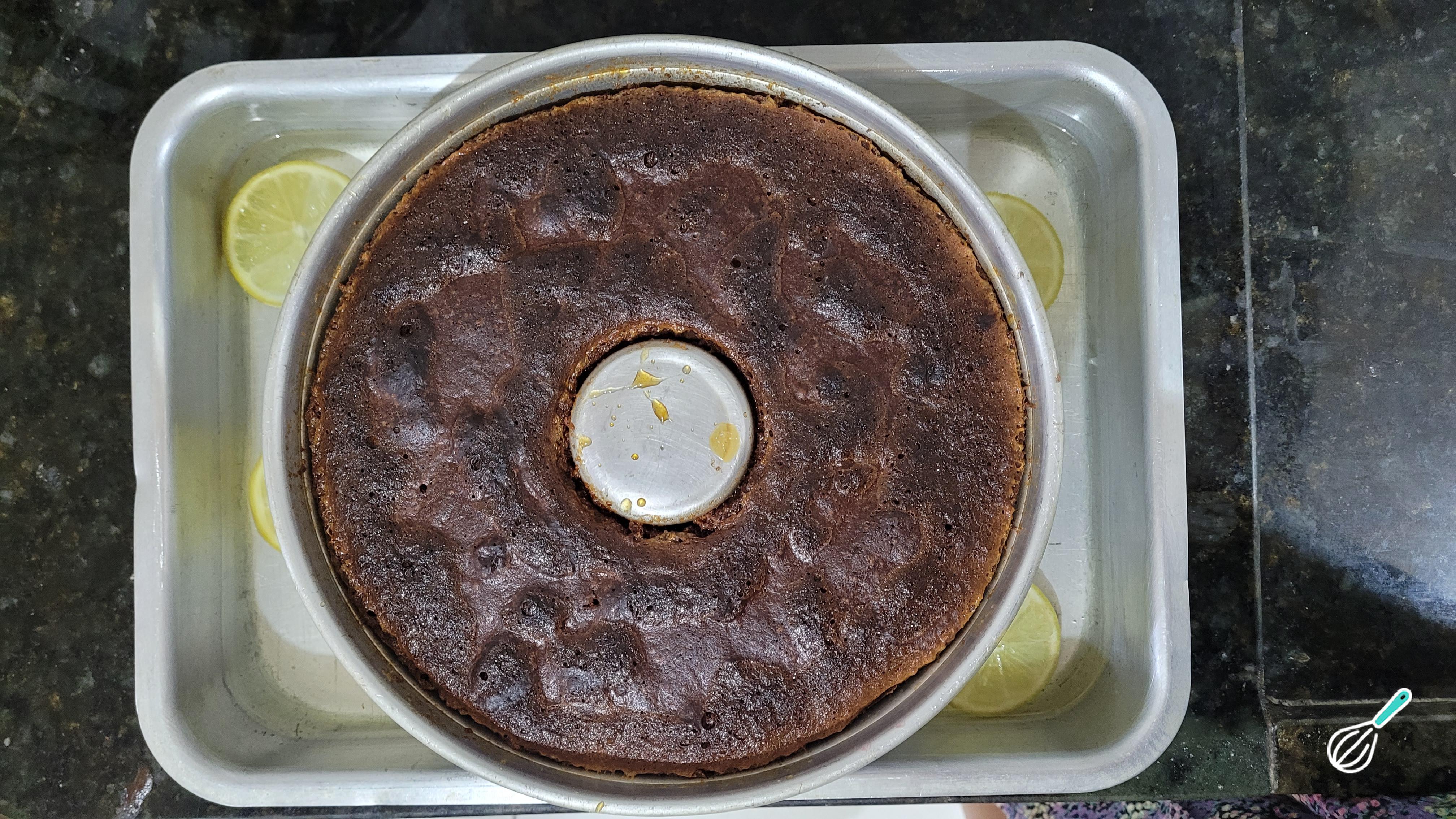 Retire e deixe esfriar em temperatura ambiente. Passe a faca em volta do bolo para ajudar a soltar as laterais. Depois, deixe gelar por, pelo menos, 2 horas.