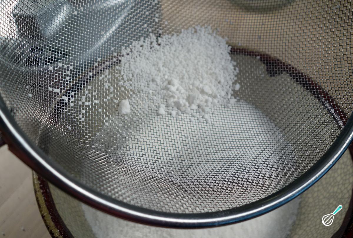 Para fazer esse maravilhoso bolo com recheio de chocolate branco, comece por preaquecer o forno a 180 º C. Peneire a farinha, o fermento, o sal e o bicarbonato de sódio (juntos) e reserve a mistura de ingredientes secos.