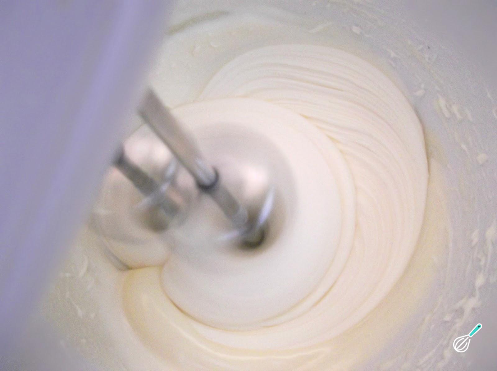 De seguida, bata a manteiga com o açúcar e a essência de baunilha até obter um creme suave. Pouco a pouco, adicione a mistura do passo anterior já fria. Bata em velocidade alta até obter consistência de chantili. Use a mistura para espalhar entre os dois pedaços de bolo e cobri-lo.