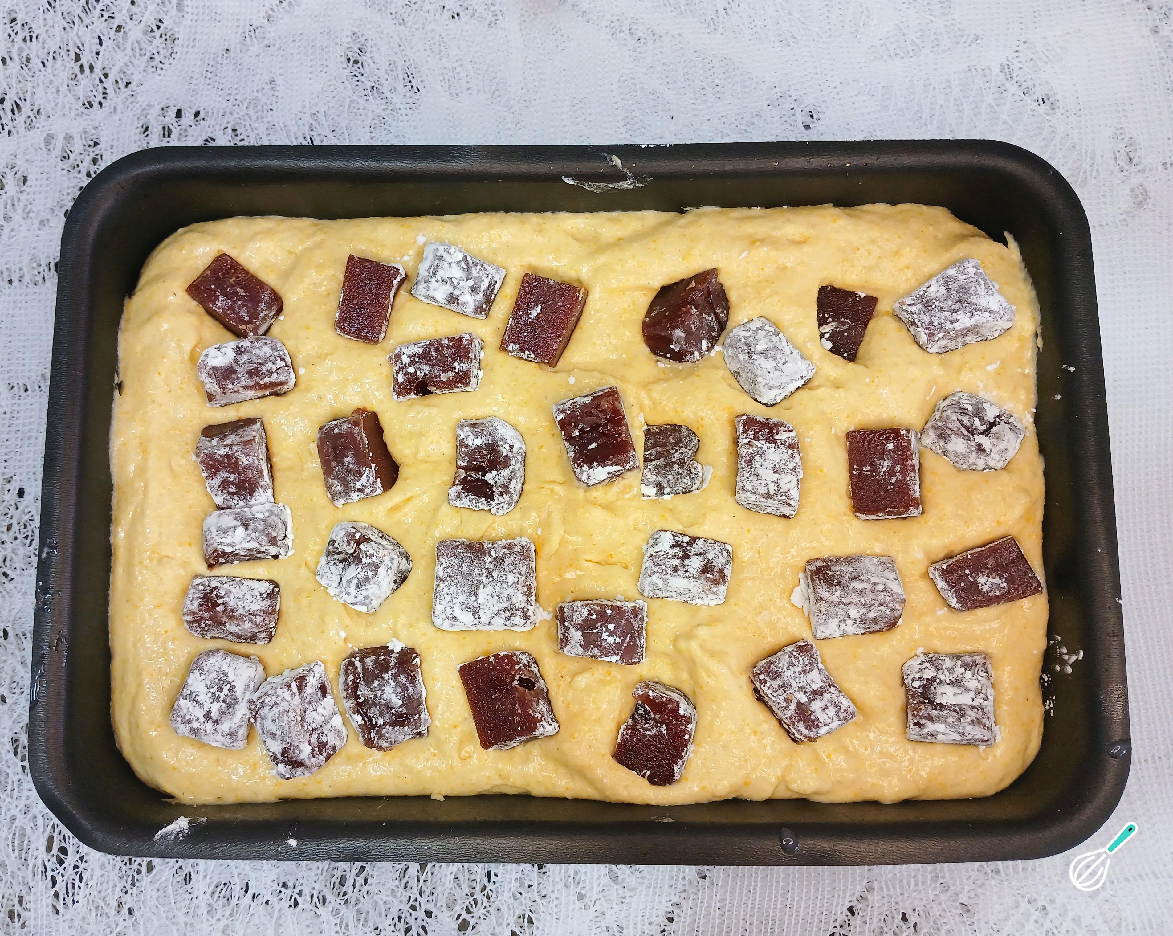 Dica: Para que a goiabada não afunde, envolva os pedaços em amido de milho.