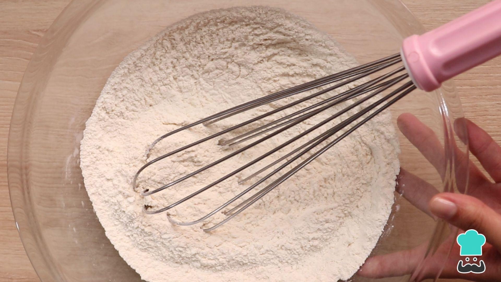 Em uma tigela grande peneire a farinha, o fermento e o sal e reserve.