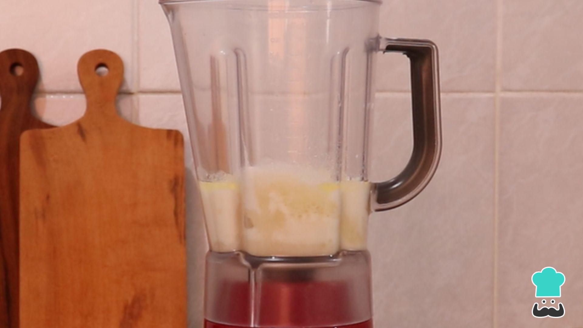 Bata no liquidificador os ovos, o açúcar, o óleo, o leite e o extrato de baunilha.