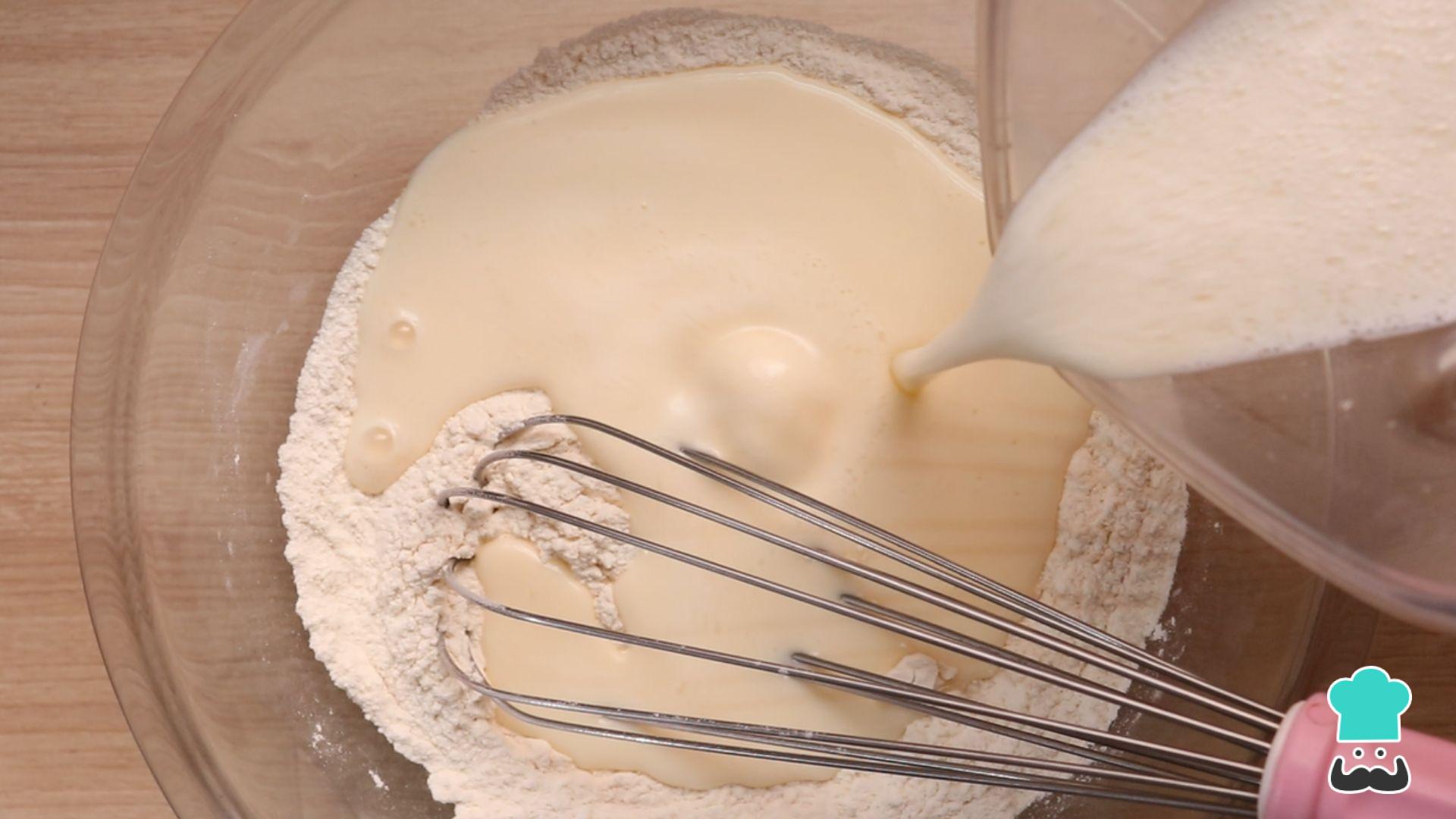 Despeje a massa do liquidificador na tigela com os ingredientes secos peneirados e misture delicadamente até ficar homogêneo.