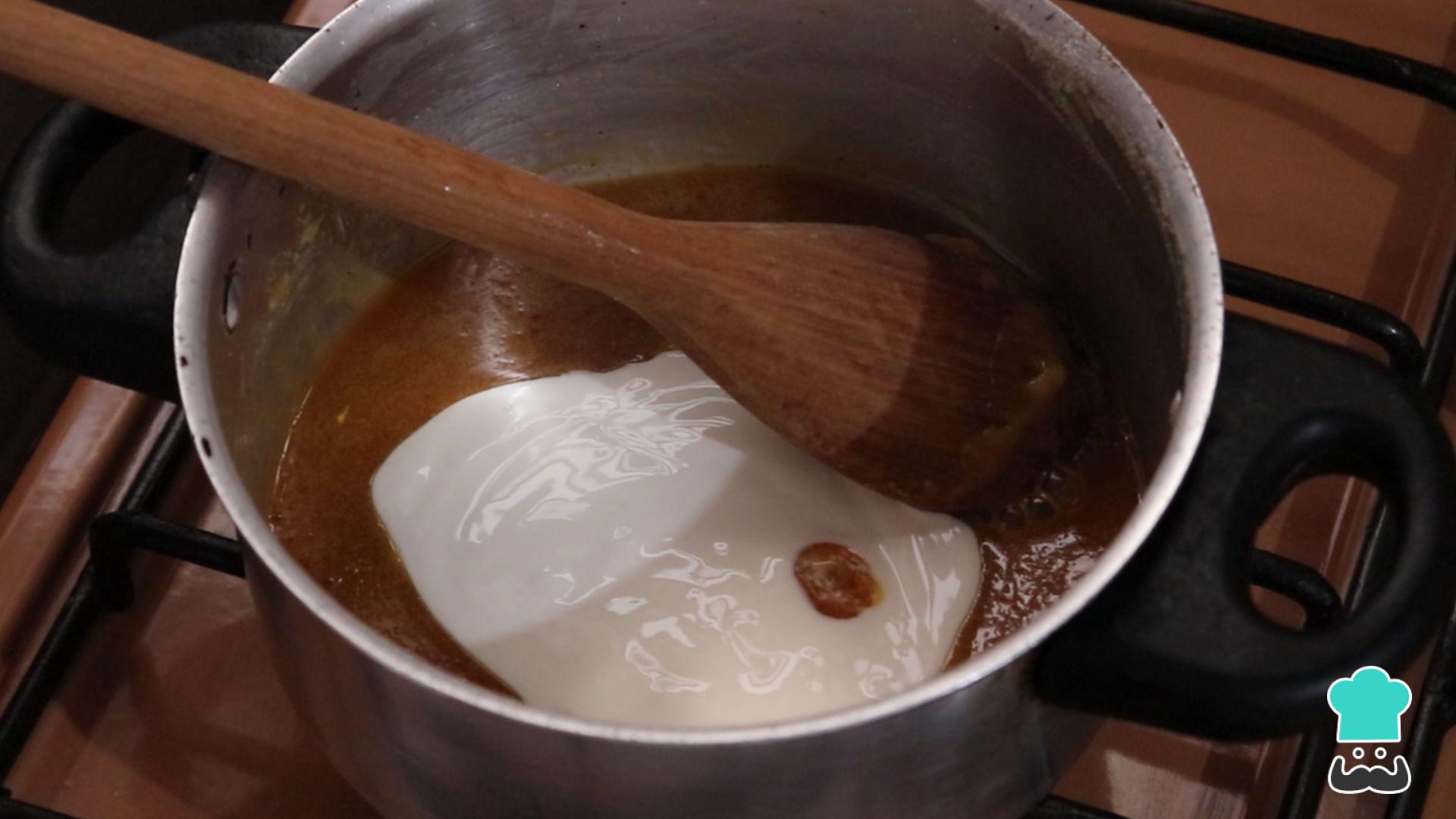 Derreta até ficar na cor caramelo. Acrescente a manteiga e misture até derreter completamente. Coloque a pitada de sal e o creme de leite. Finalize com o amendoim picado e mexa bem por 1 minuto.