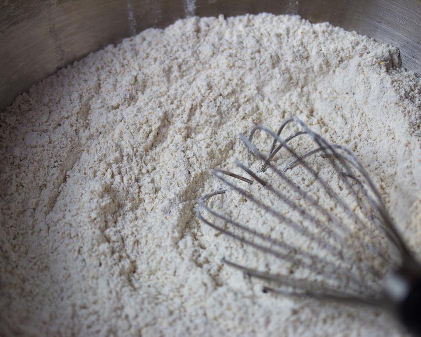 Dica: Se o seu liquidificador não for muito potente coloque os ingredientes líquidos batidos na tigela dos secos e misture com uma colher.