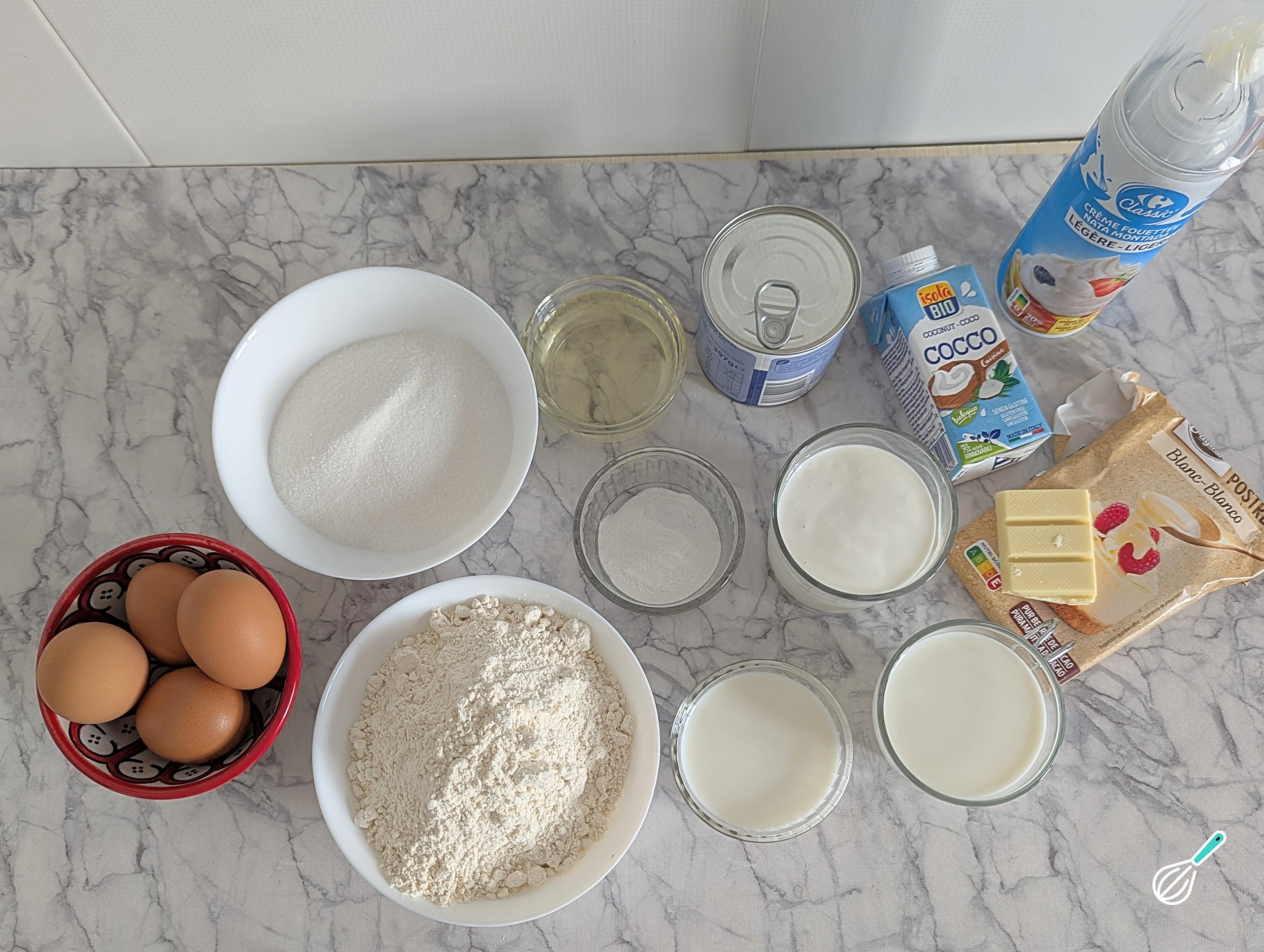 Comece separando os ingredientes necessários para preparar o bolo de 4 leites.
