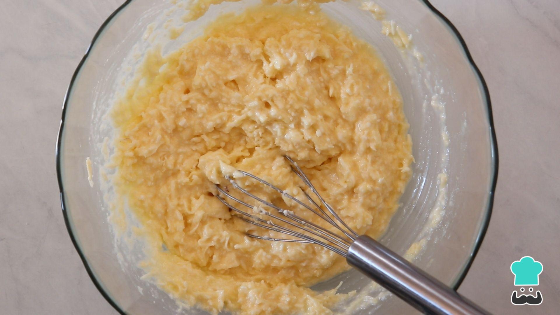 A massa deste bolo de mandioca simples e rápido ficará assim, bem cremosa e cheia de pedaços!