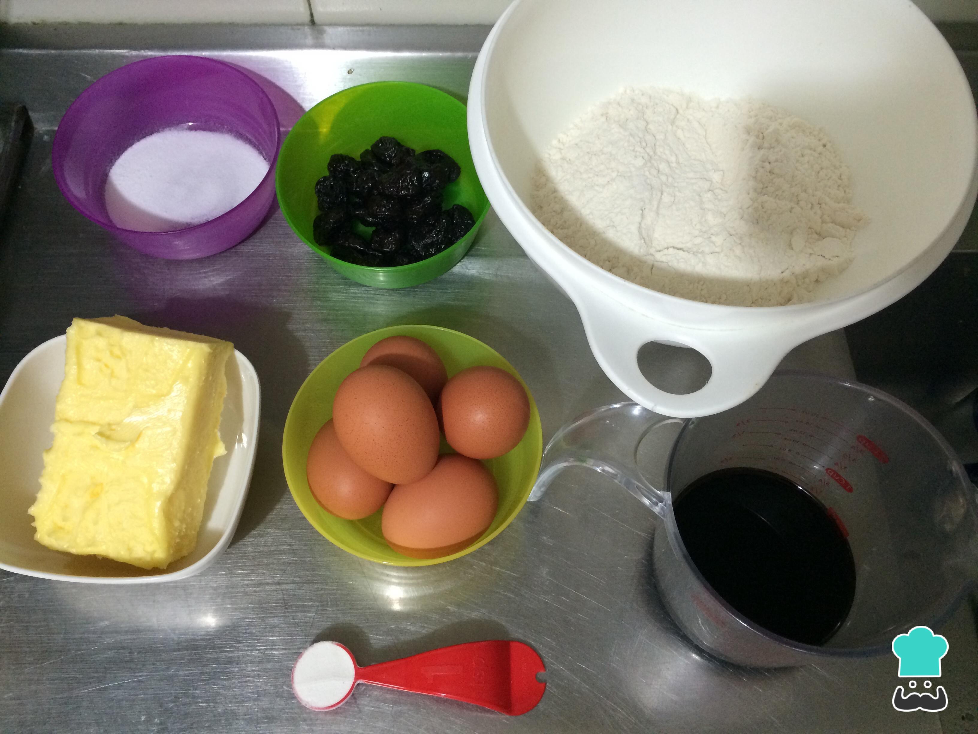 O primeiro passo desta receita de bolo de ameixa sem açúcar é reunir os ingredientes.