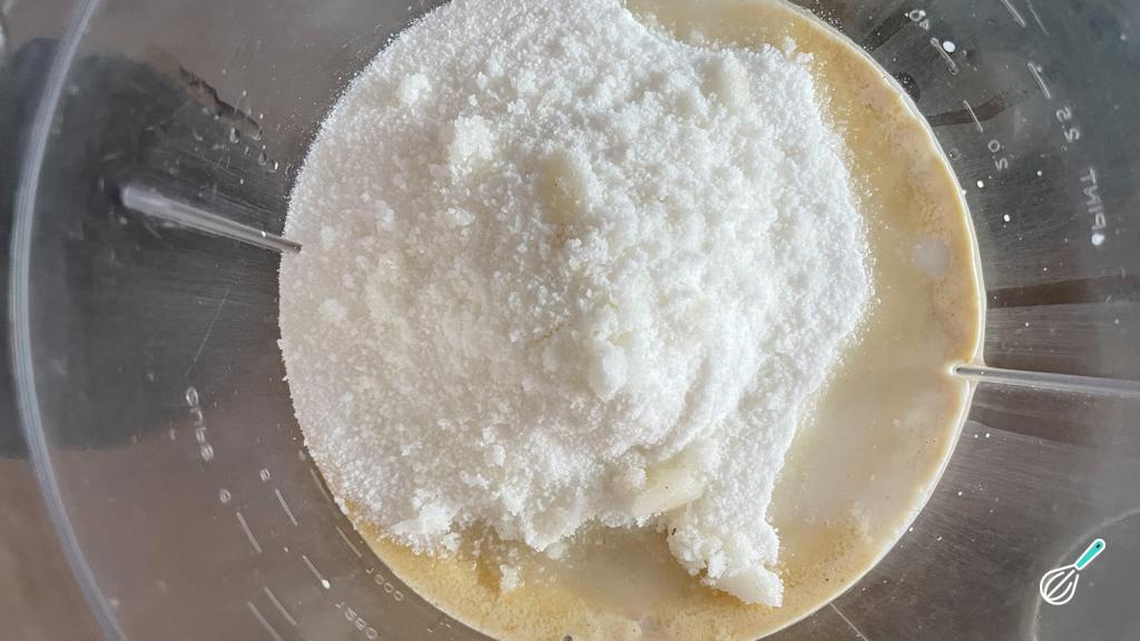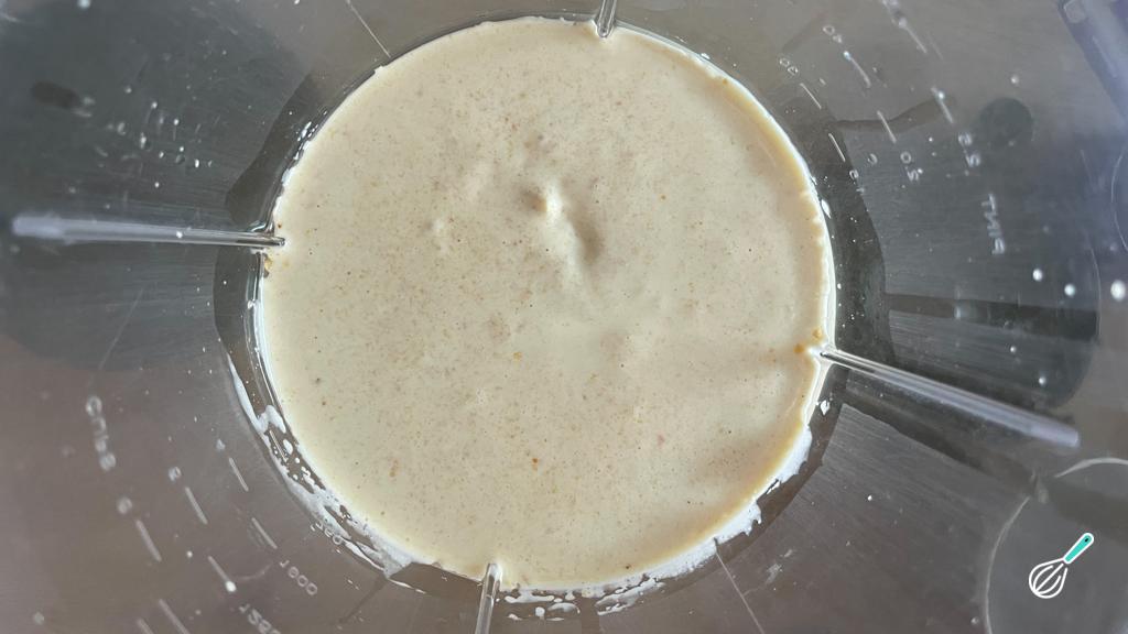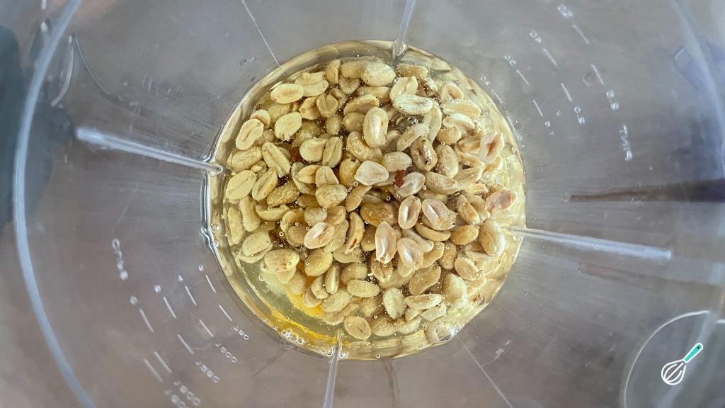 No liquidificador, coloque o leite, o óleo, os ovos e o amendoim.