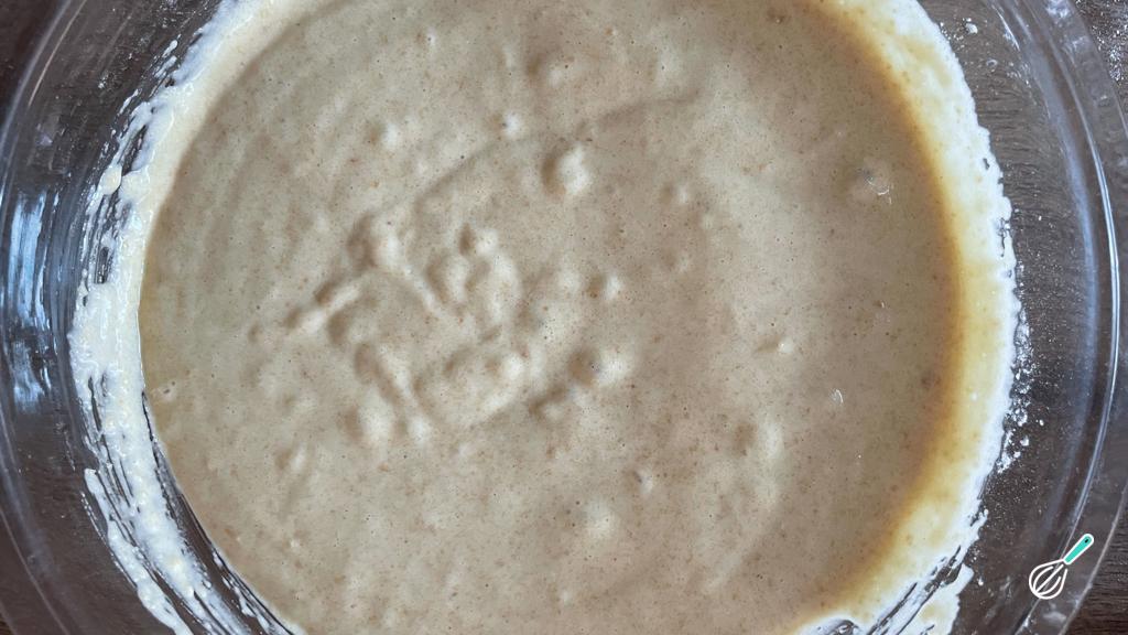 Misture bem, sempre com movimentos leves. Transfira a mistura para a forma e leve ao forno preaquecido a 180 graus por uns 45 minutos ou até o teste do palito sair limpo.