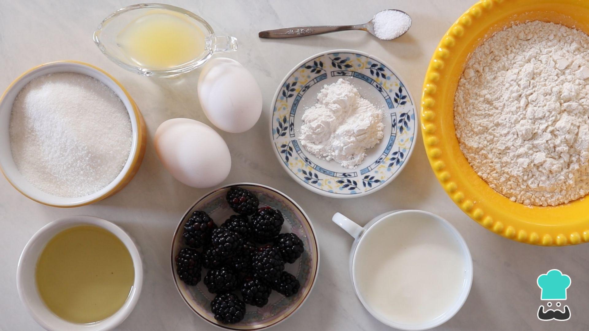 Separe os ingredientes do seu bolo de amora com iogurte. Lave bem as amoras, esprema o suco do limão siciliano e deixe os ovos em temperatura ambiente.