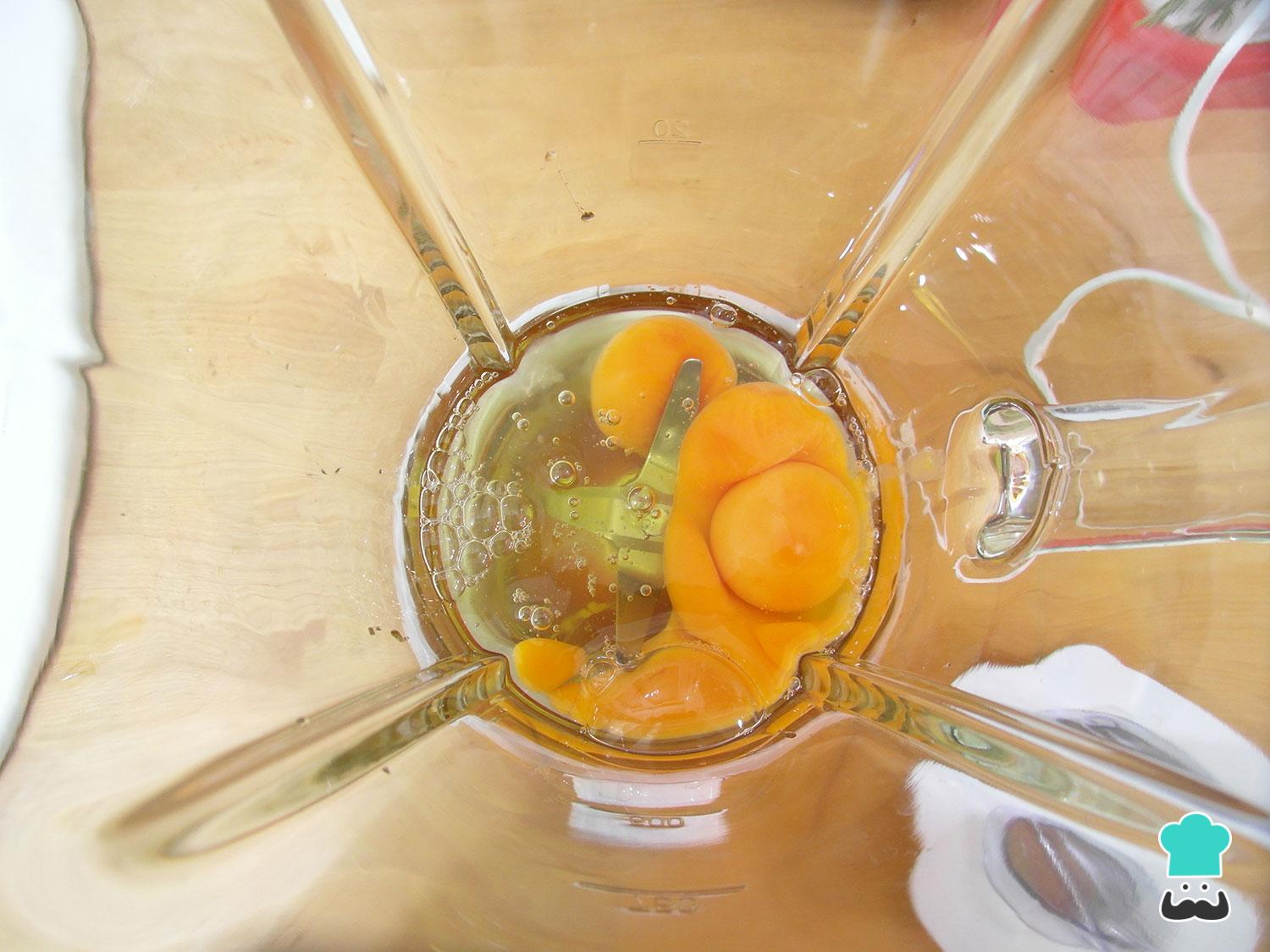 No liquidificador bata o ovo com óleo, o açúcar e a baunilha por 1 minuto.