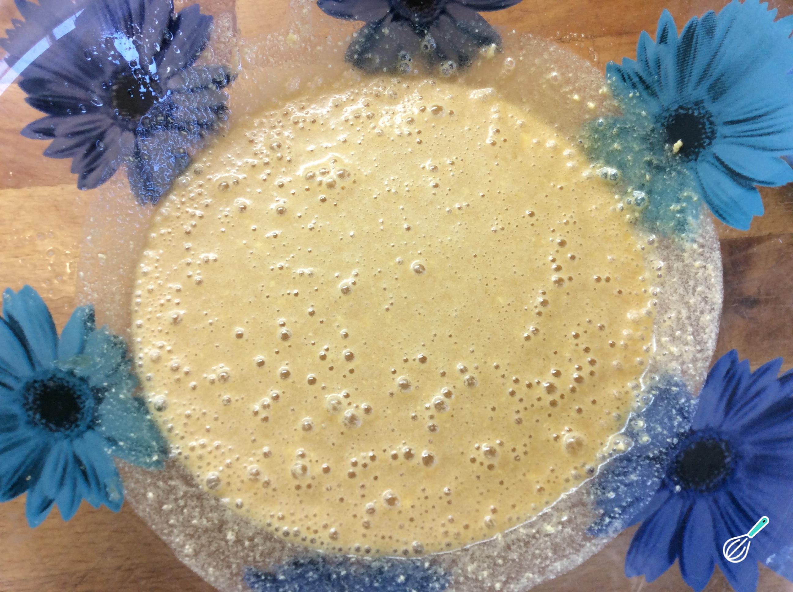 Em uma tigela grande bata os ovos com o açúcar. Pode bater manualmente, com uma batedeira elétrica ou preparar no liquidificador, como preferir.