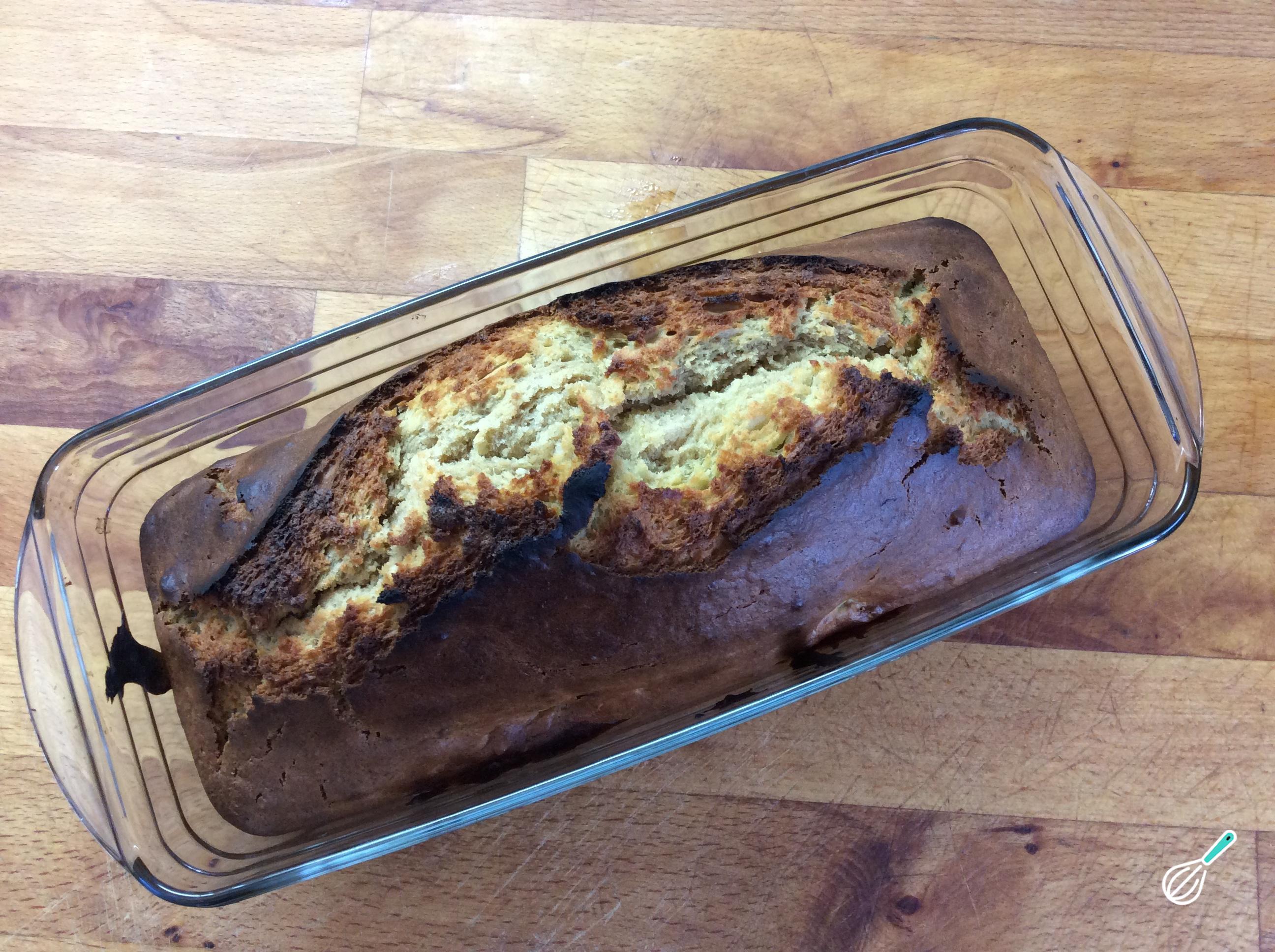Vigie o bolo de banana e nozes enquanto assa, para evitar que passe do ponto. Para garantir que está bem assado, faça o teste do palito: pique o centro do bolo com um palito e, se este sair limpo, significa que o bolo está pronto!