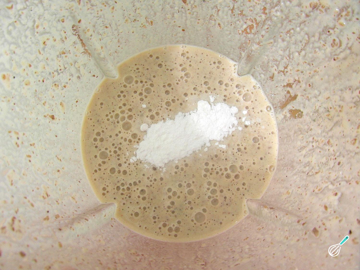 Prepare esta receita de bolo de banana sem açúcar batendo no liquidificador as bananas cortadas em pedaços e os ovos. Depois acrescente a farinha de aveia, a canela e o fermento e volte a bater.